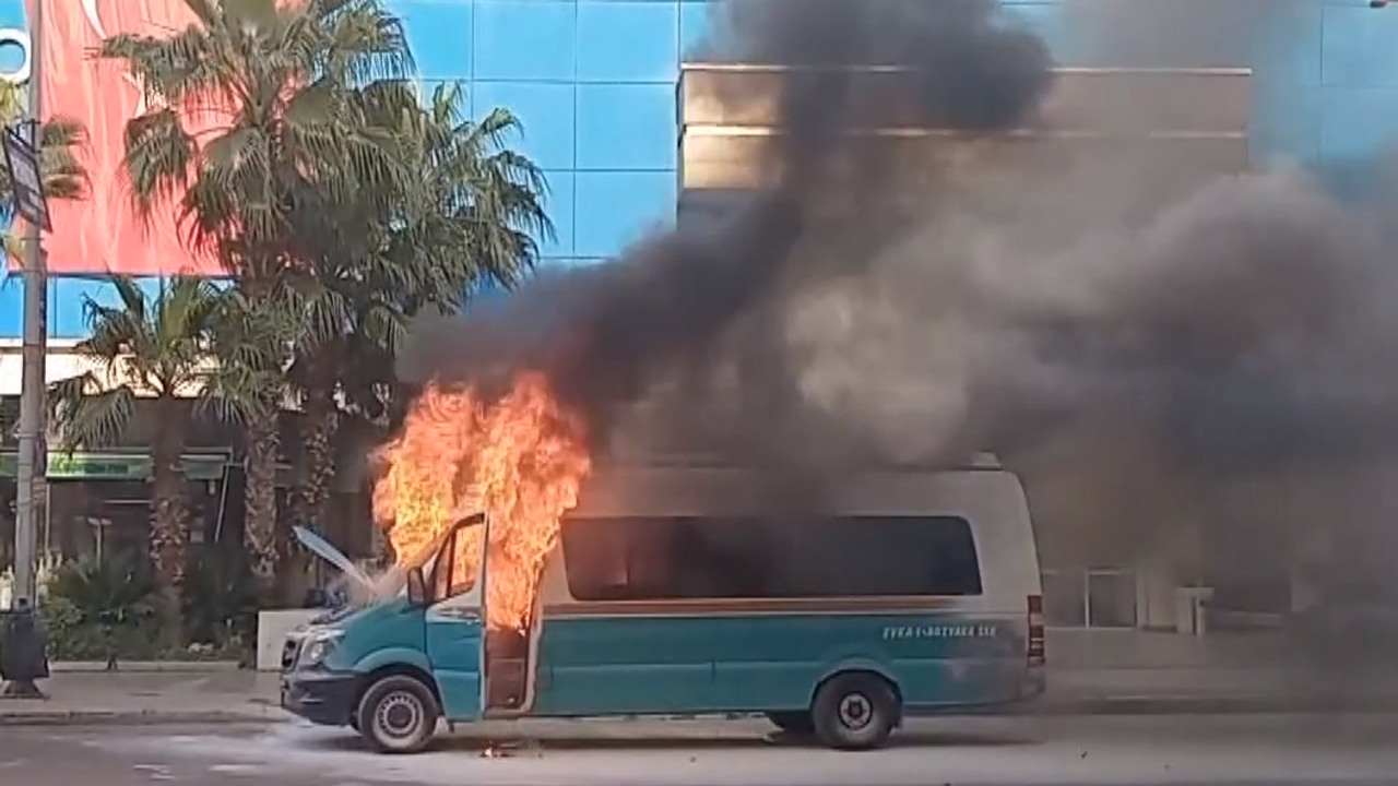 Minibüsteki yangın cep telefonu kamerasıyla kaydedildi.