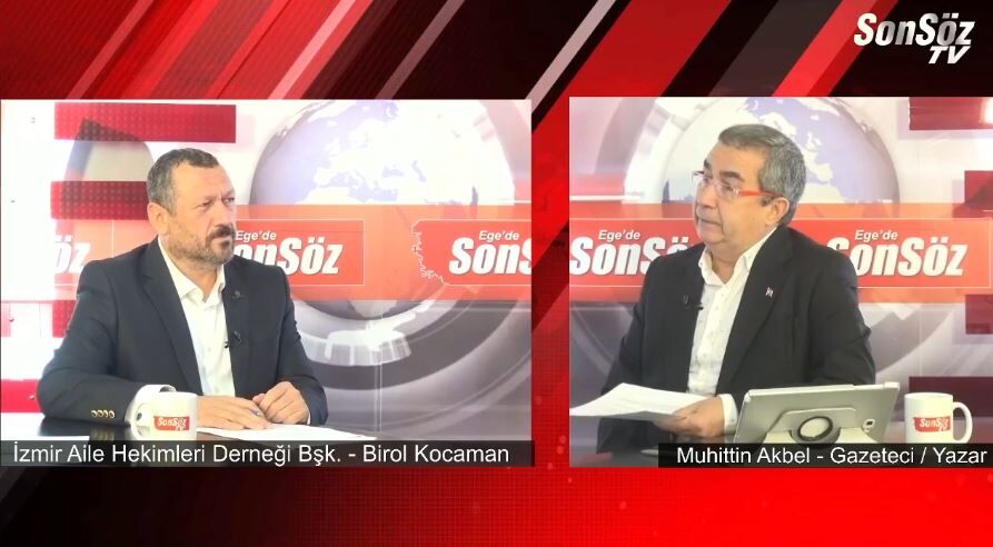EGEDESONSÖZ - İzmir Aile Hekimleri Derneği Başkanı Dr. Birol Kocaman, Sonsöz TV'de Gazeteci yazar Muhittin Akbel'in konuğu oldu. Dr. Kocaman, Aile Sağlık Merkezleri'nde (ASM) yaşanan sorunlardan son günlerde yaşanan aşı krizine, sağlıkçılara verilen ek ödeme sözünden aile hekimlerinin görev tanımına kadar bir çok konuda değerlendirmelerde bulundu. Pandemi döneminin başından itibaren tüm sağlık çalışanları olarak düzenli test taleplerinin olduğunun altını çizen Dr. Birol Kocaman, taleplere rağmen şu an böyle bir test sürecinin bulunmadığını söyledi. Kocaman, 'Bizim en başından beri bütün sağlık çalışanları olarak periyodik test talebimiz var. Fakat bunlar yapılmıyor. Ancak temaslı durumunda olduğumuzda, o birime ve arkadaşlarımıza yapılıyor' ifadelerini kullandı.
