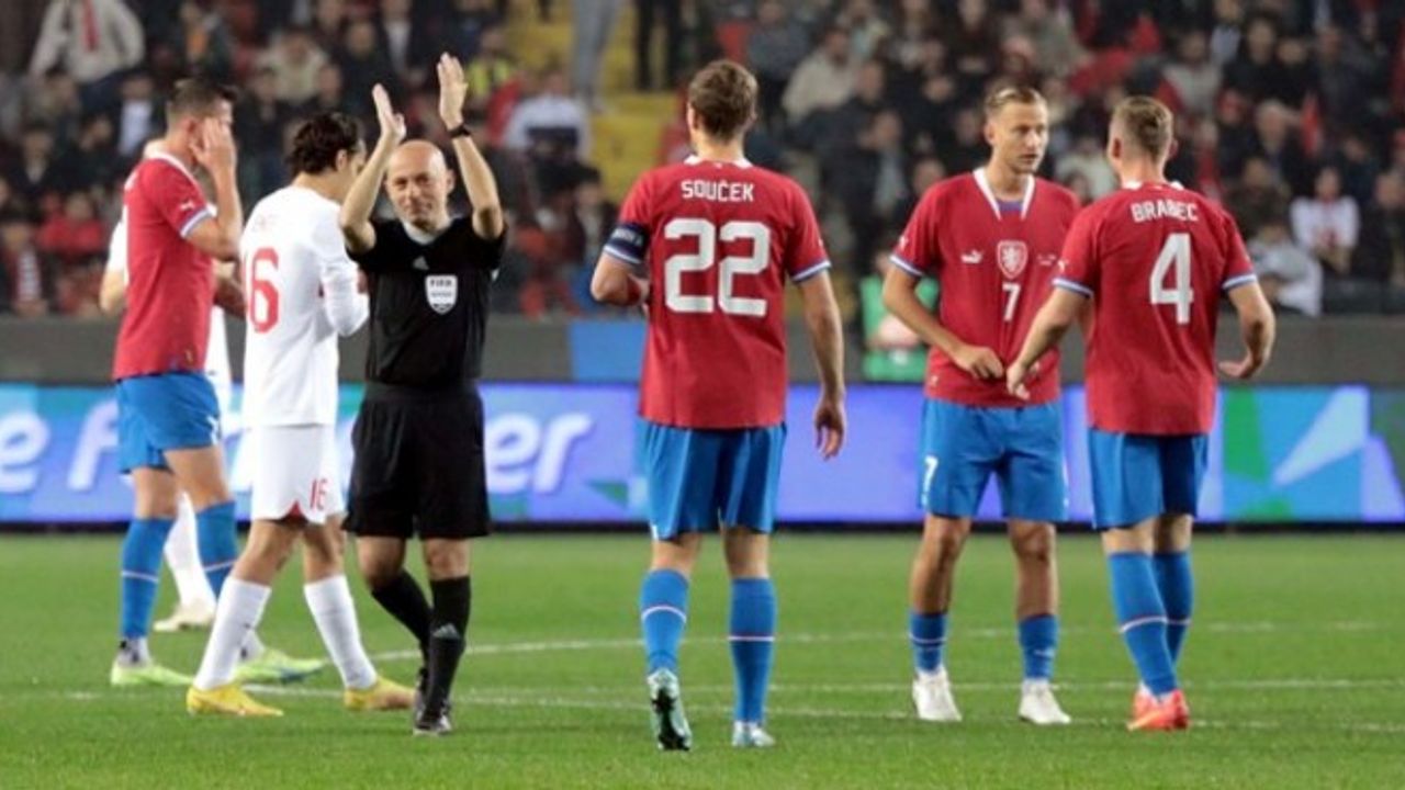 Kalyon Stadı'nda Türkiye ile Çekya arasında oynanan hazırlık maçının ilk 5 dakikasını yöneten Cüneyt Çakır'ı, sahada bulunan A Milli Takım ve Çek futbolcular sarılarak tebrik etti.