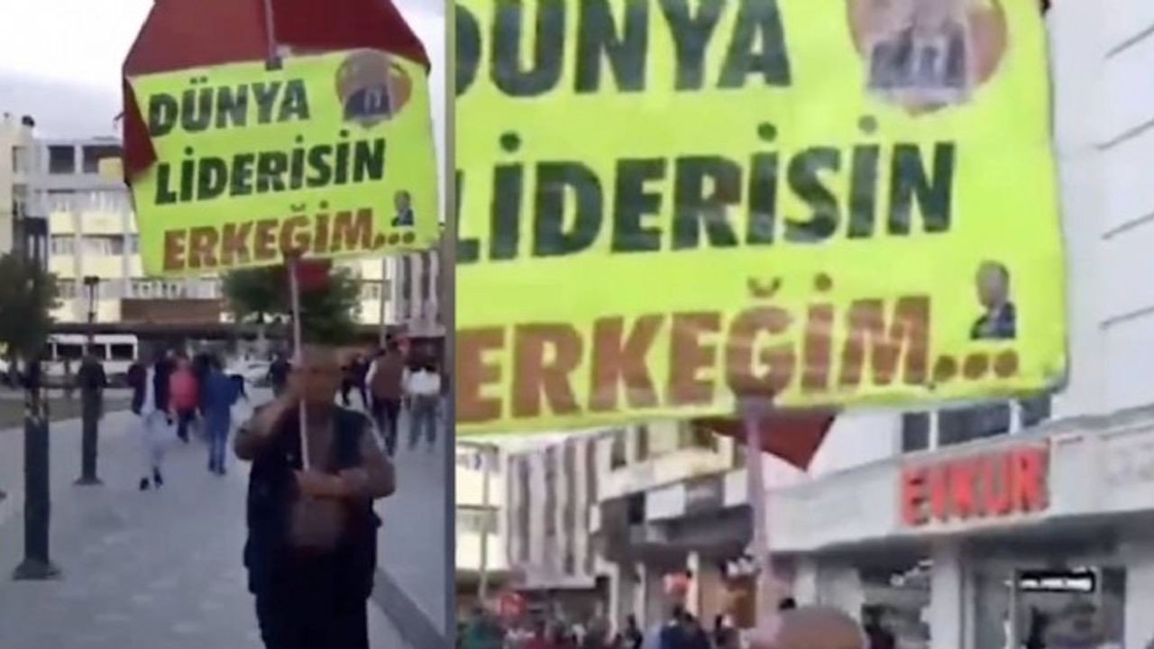 14 Mayıs'ta Cumhurbaşkanı ve AKP Genel Başkanı Tayyip Erdoğan'a yüzde 69 oranında destek çıkan Konya'da bir vatandaş 'Dünya liderisin erkeğim…' yazılı pankartla şehri dolaştı.