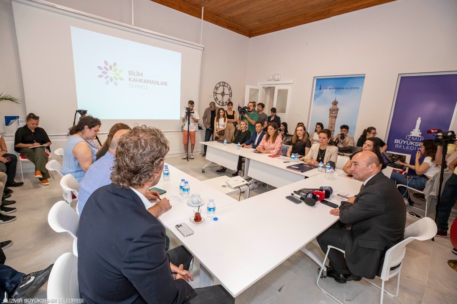 Bilimle uğraşan gençleri destekleyen Bilim Kahramanları Derneği'nin önemli bir görev üstlendiğini belirten İzmir Büyükşehir Belediye Başkanı Tunç Soyer, 'Derneğinizin ismi de çok güzel. Bilimle uğraşan gençleri kahraman olarak tarif ettiğiniz bir yapı. Aslında bizim kahramanlarımız da sizlersiniz. Başka çaremiz yok, başka bir kurtuluş yok, başka bir umut yok. Gençleri dünyanın bilimiyle ne kadar buluşturabilirsek, o kadar aydınlık geleceği yaratmış olacağız. Yaptığınız iş hem kutsal, hem çok kıymetli, hem de biz ne yapsak az ve eksik. Seve seve destek olacağız' dedi.
