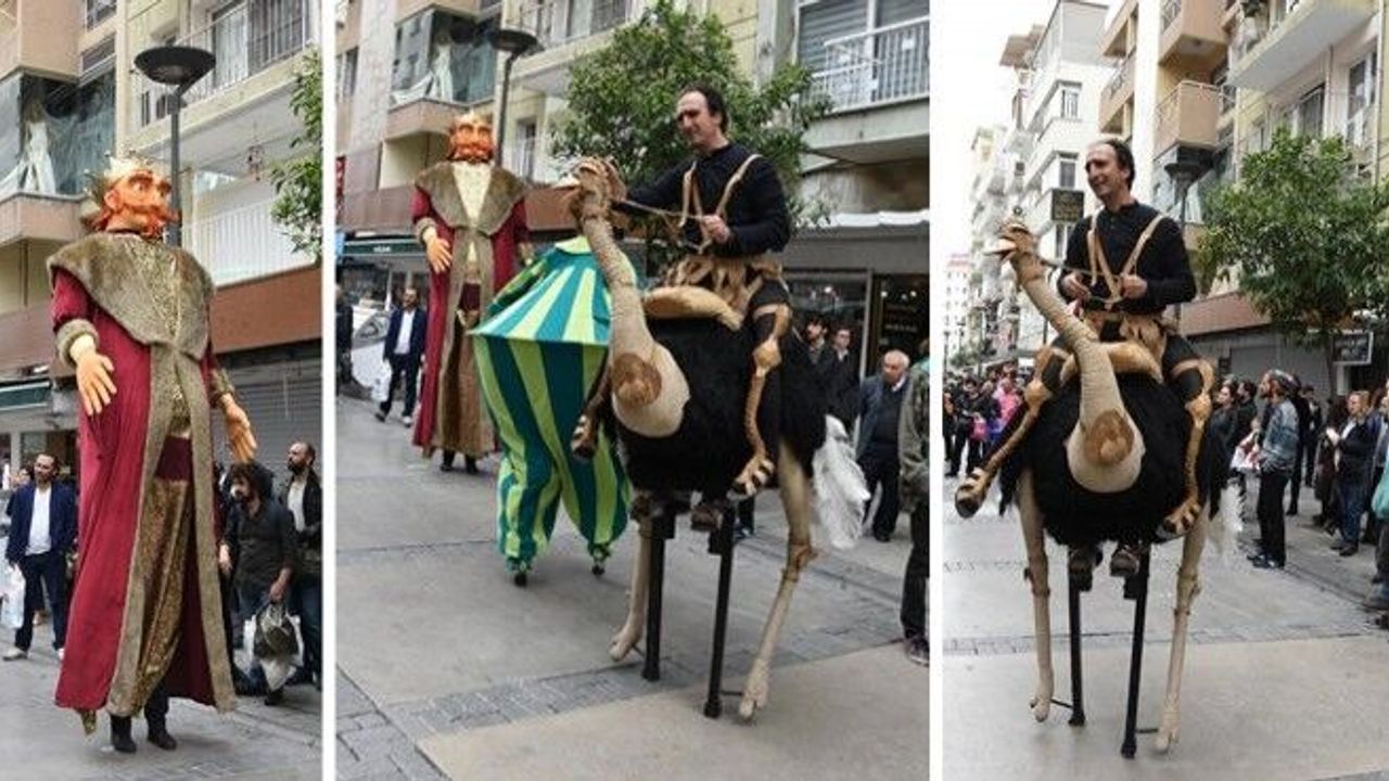 Alsancak Türk Saylan Kültür Merkezi önünde toplanan kalabalık, tiyatro gruplarının sokakta yaptığı tiyatro gösterilerini ilgiyle izledi. Çocuklar, hayvan kostümlü gösterileri sevinçle alkışladı. Tiyatro Günü etkinlikleri kapsamında 4'ü çocuk oyunu olmak üzere toplam 10 oyunun farklı salonlarda sergileneceği etkinliklerde Muhsin Ertuğrul Emek Ödülü ile Suat Taşer Kısa Oyun Yarışması ödülleri dağıtılacak. Muhsin Ertuğrul Emek Ödülü'nü bu yıl ünlü sanatçı Timur Selçuk alacak. İzmirliler İsmet İnönü Kültür Merkezi'nde Müjdat Gezen Tiyatrosu'nun 'Köşe Yazıları' isimli oyununu ücretsiz izleyebilecek. Dokuz Eylül Üniversitesi Sahne Sanatları Bölümü Sahne Tasarımı öğrencilerinin '35.Dekor Maket Eskiz Sergisi' ise İzmir Sanat'ta 27 Mart ile 7 Nisan tarihleri arasında sergilenecek. (DHA)