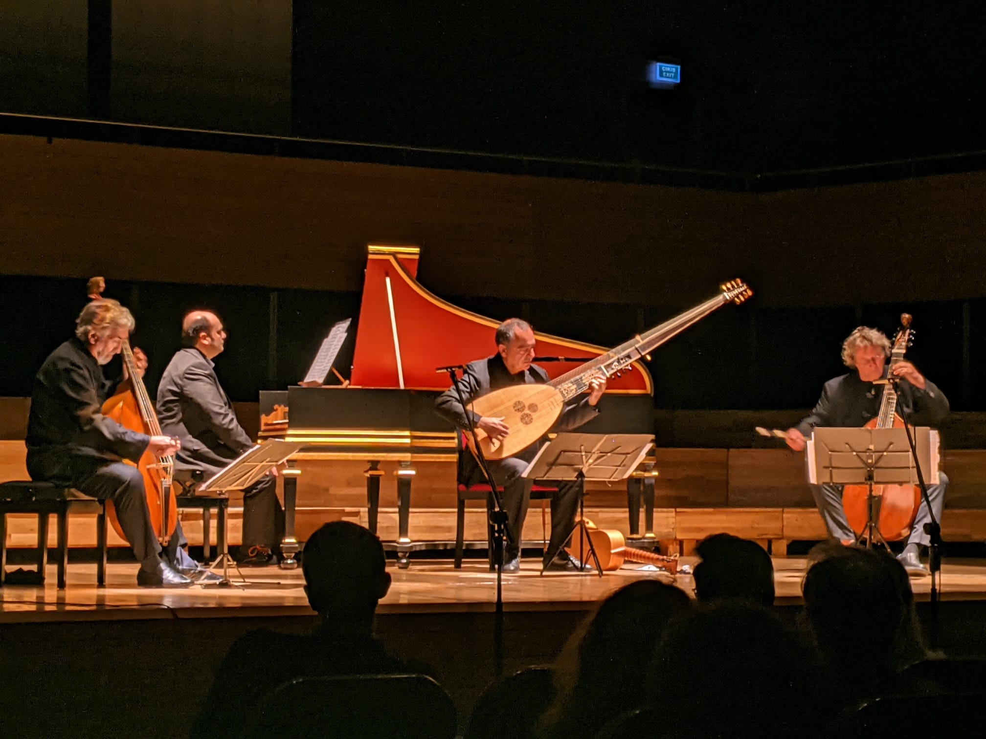 İzmir'deki konserde ilk kez Theorbo isimli çalgıyı dinledik. 16. yüzyılın sonlarında İtalya'da ortaya çıkmış, çalınan telli bir çalgı imiş. Uzatılmış bir sap ve daha geniş bir perde kutusu özelliğine sahip olan çalgı… Xavier Diaz isimli sanatçı hem theorbo hem de barok gitar çaldı.