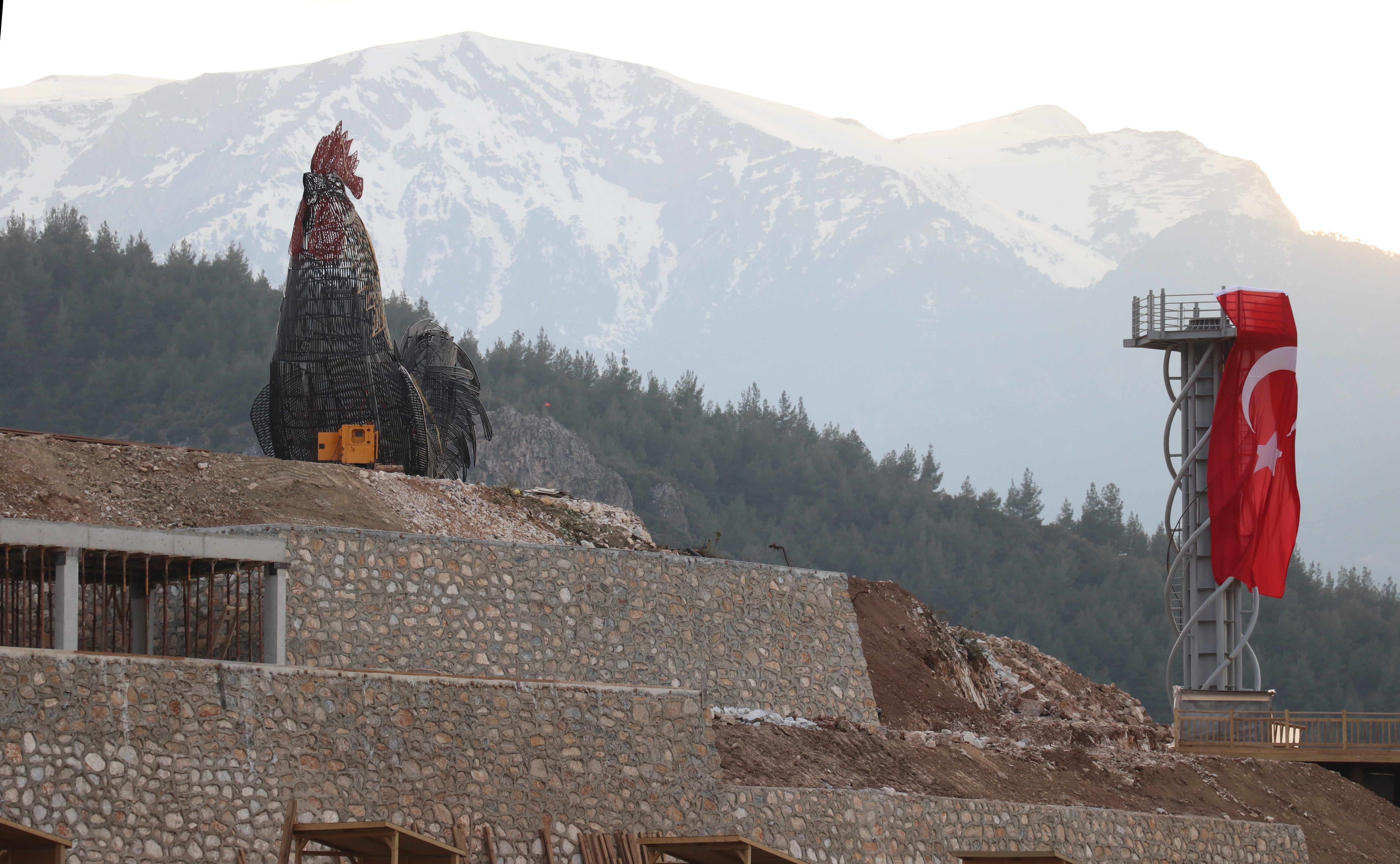 Millet Bahçesi Seyir Terası Projesi'nin Horoz Köy etabında Heykeltıraş Osman Atmaca tarafından yapımına 6 ay önce başlanılan heykel ve kaidesi için 26 ton demir kullanıldığı, kaidesiyle birlikte 27 metre yüksekliğindeki horoz heykelinin kentin genelinden görülebileceği belirtildi.