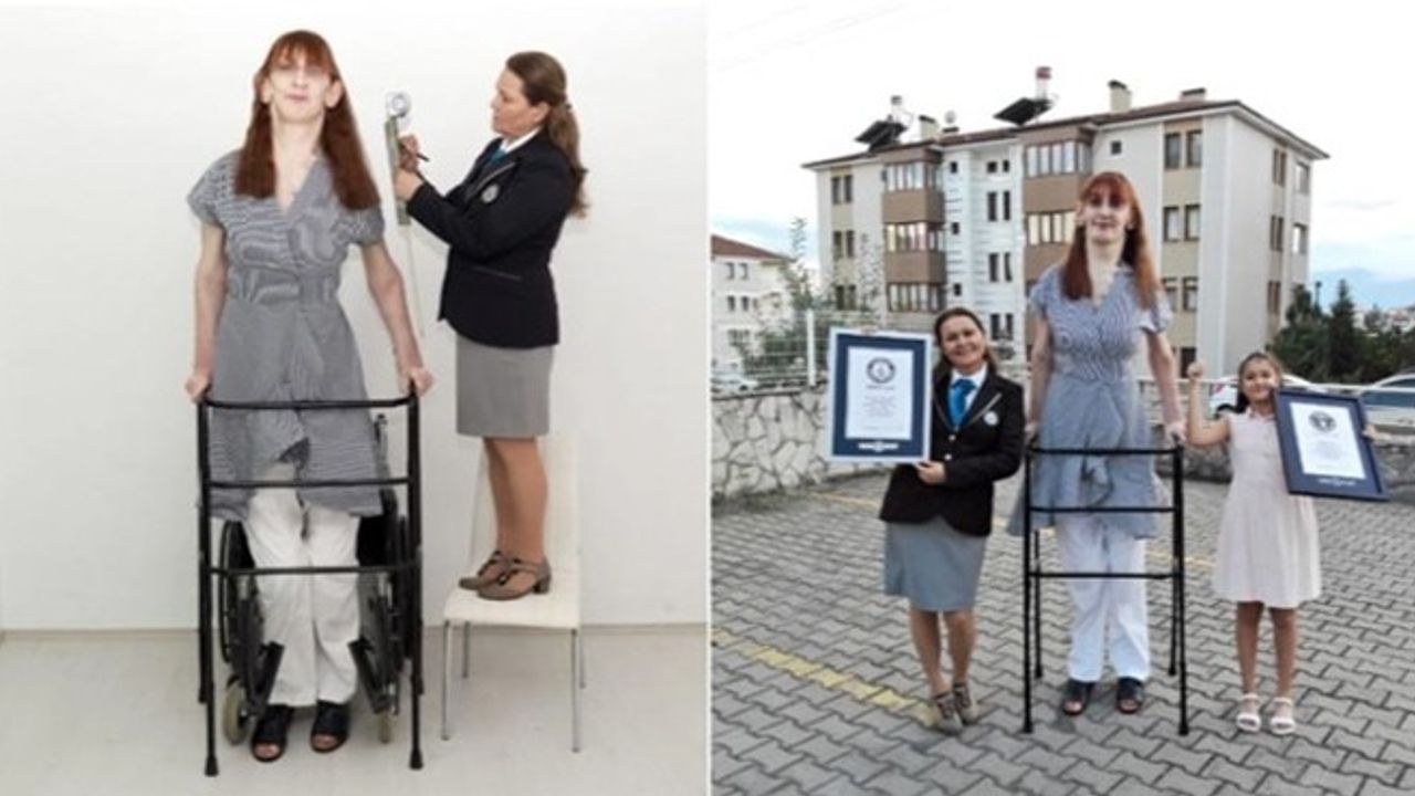 Karabük'ün Safranbolu ilçesinde yaşayan Rümeysa Gelgi, 2 metre 15 santimetrelik boyuyla dünyanın en uzun boylu kadını olarak Guinness Rekorlar Kitabı'na girdi.