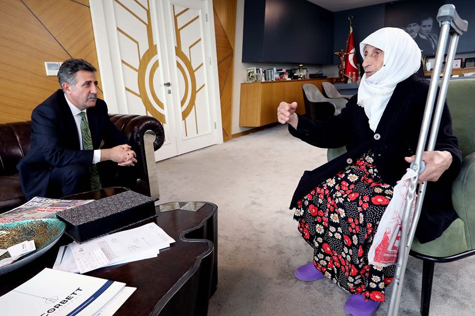 Asiye teyze, teşekkür için belediyeye gelerek Başkan Serdar Sandal ile buluştu. Asiye teyzeyi makamında ağırlayan ve çay ikram eden Başkan Sandal, elini öptü, hayır duasını aldı. Asiye Teyze, ilgisi için belediye yönetimine ve Başkan Sandal'a teşekkür ederken, 'Evimin çatısı akıyordu. Artık sorunum kalmadı. Allah razı olsun' ifadelerini kullandı.