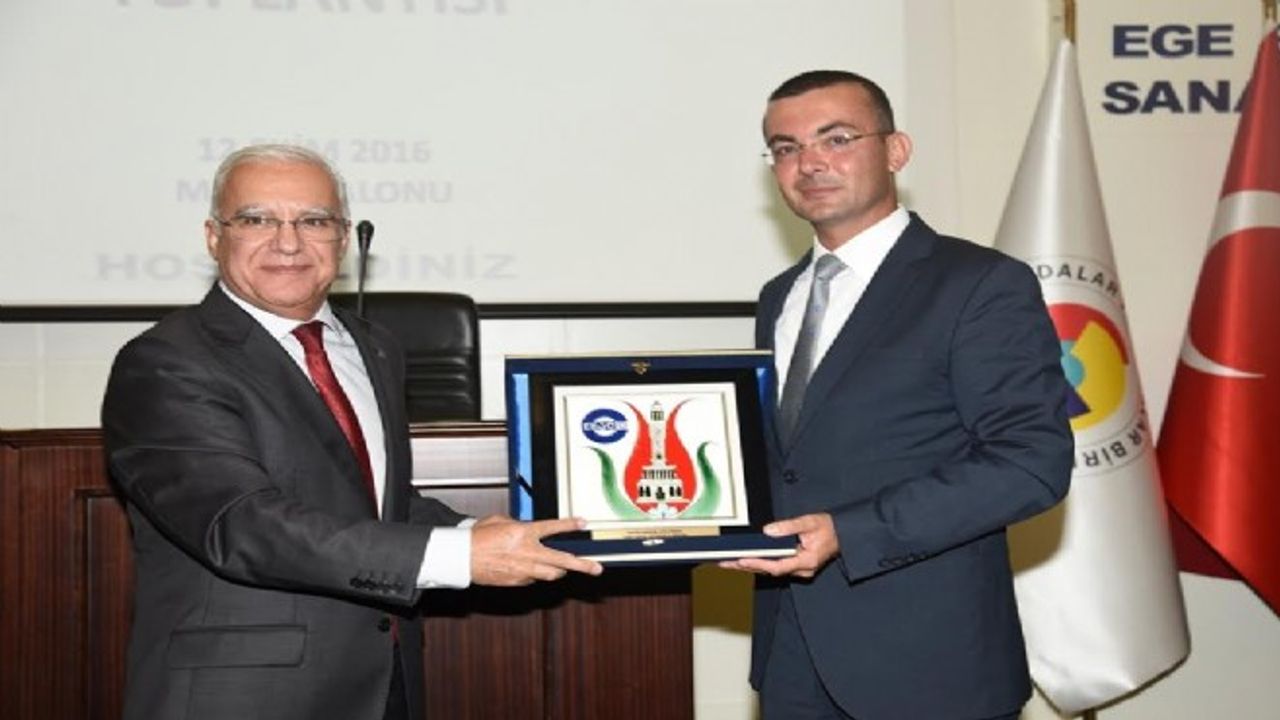Toplantının sonunda EBSO Yönetim Kurulu Başkanvekili H. İbrahim Gökçüoğlu, SGK İzmir İl Müdürü Ekrem Gülcemal, plaket verdi.