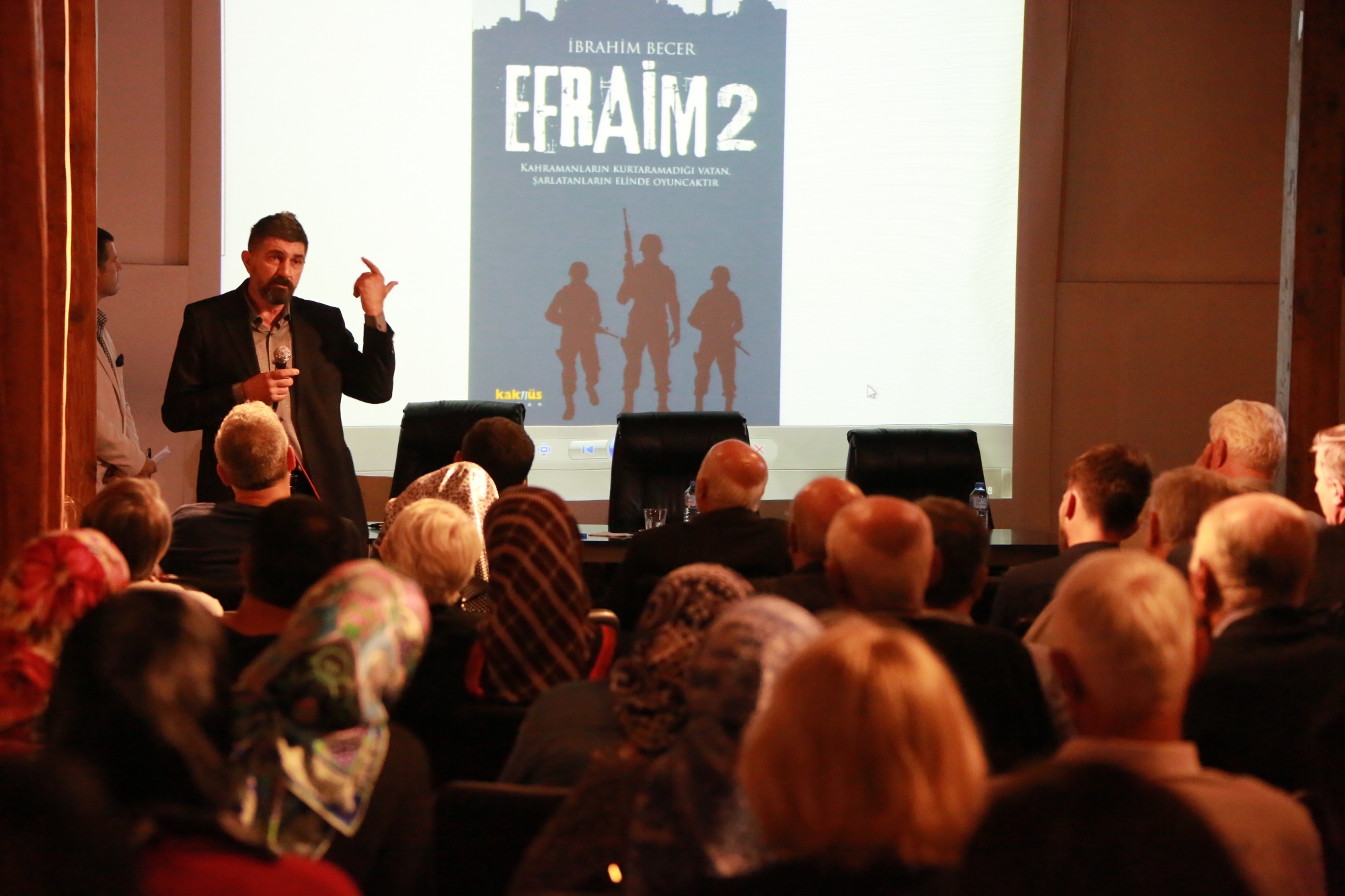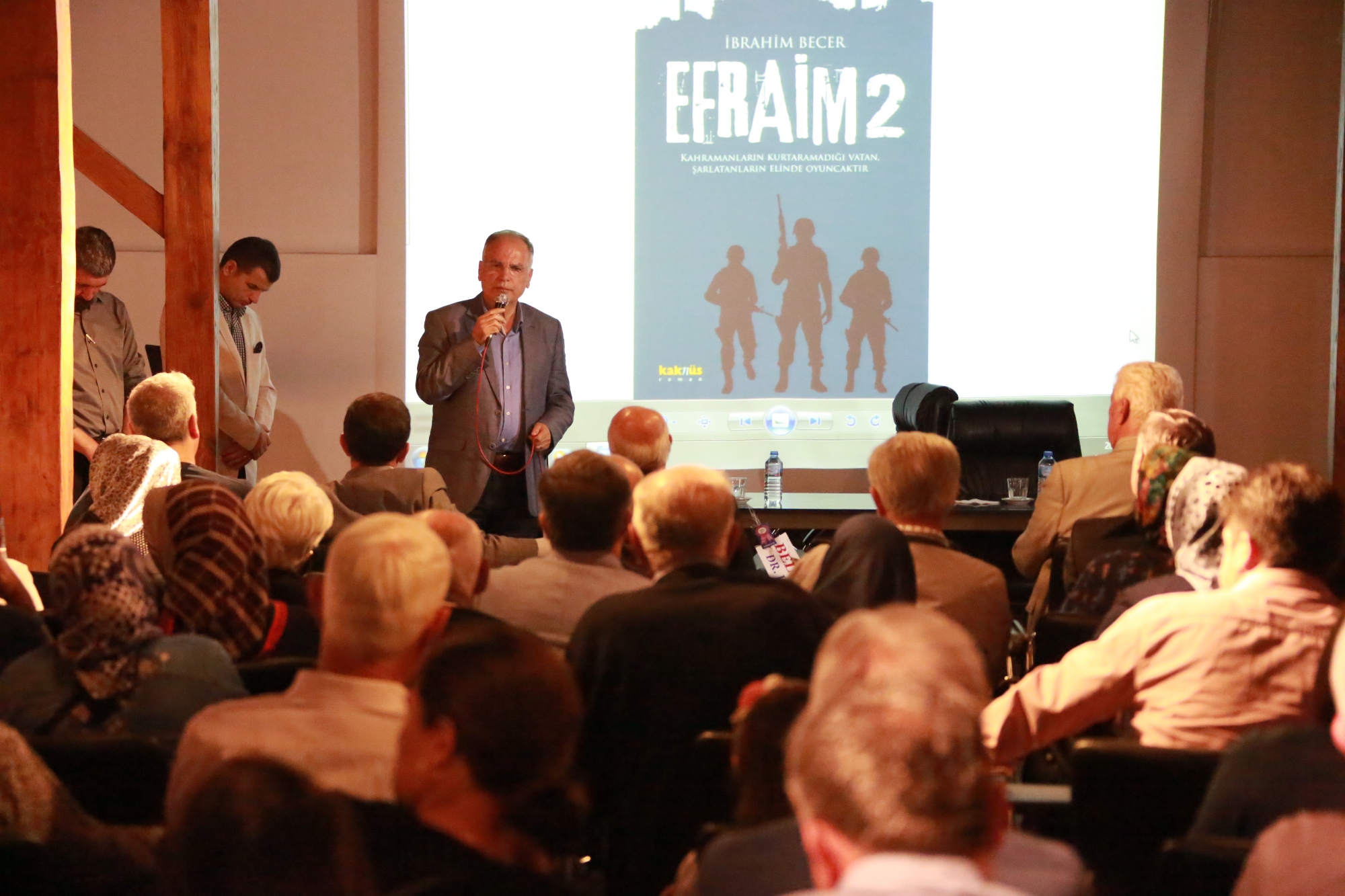 Ülke çapında ilki ses getiren Efraim'in devamı niteliğinde olan Efraim 2 kitabının okurlarıyla buluşmasının heyecanını yaşayan İbrahim Becer yazarın toplumun aynası olduğunu belirterek; ' İlk kitabımda olduğu gibi bu kitapta da toplumun meselelerini ele aldık. Gönül ister ki başka konuları yazalım fakat yazar yaşadığı toplumda ne gördüyse onu yazmakla mükelleftir. Ülkemiz bu durumdayken bize de başka seçenek kalmıyordu' dedi. Türkiye'nin terörle mücadele sürecine de değinen Becer; 'Terörle mücadele sadece Türkiye'nin Güneydoğusuna giden çocuklara bırakılacak bir kavram değildir. Çünkü bir terör örgütü asla propagandayı bırakmaz. Belki silahı bırakır ama propagandayı bırakmaz' dedi.
