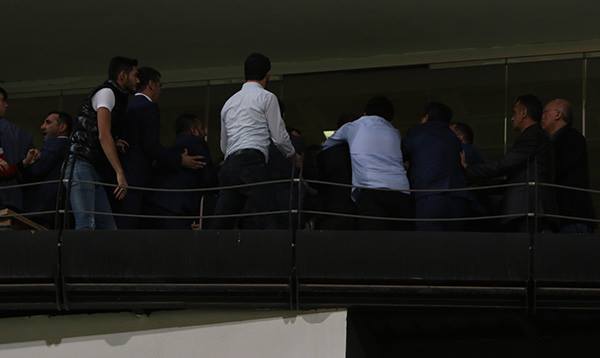 Maç sırasında ve sonrasında protokol tribünün altındaki siyah-beyazlı taraftarlarla hararetli şekilde tartışan Denizlisporlu yöneticileri sakinleştirmeye çalışan AK Parti Manisa İl Başkanı Berk Mersinli de daha sonra gerginliğe dahil oldu.