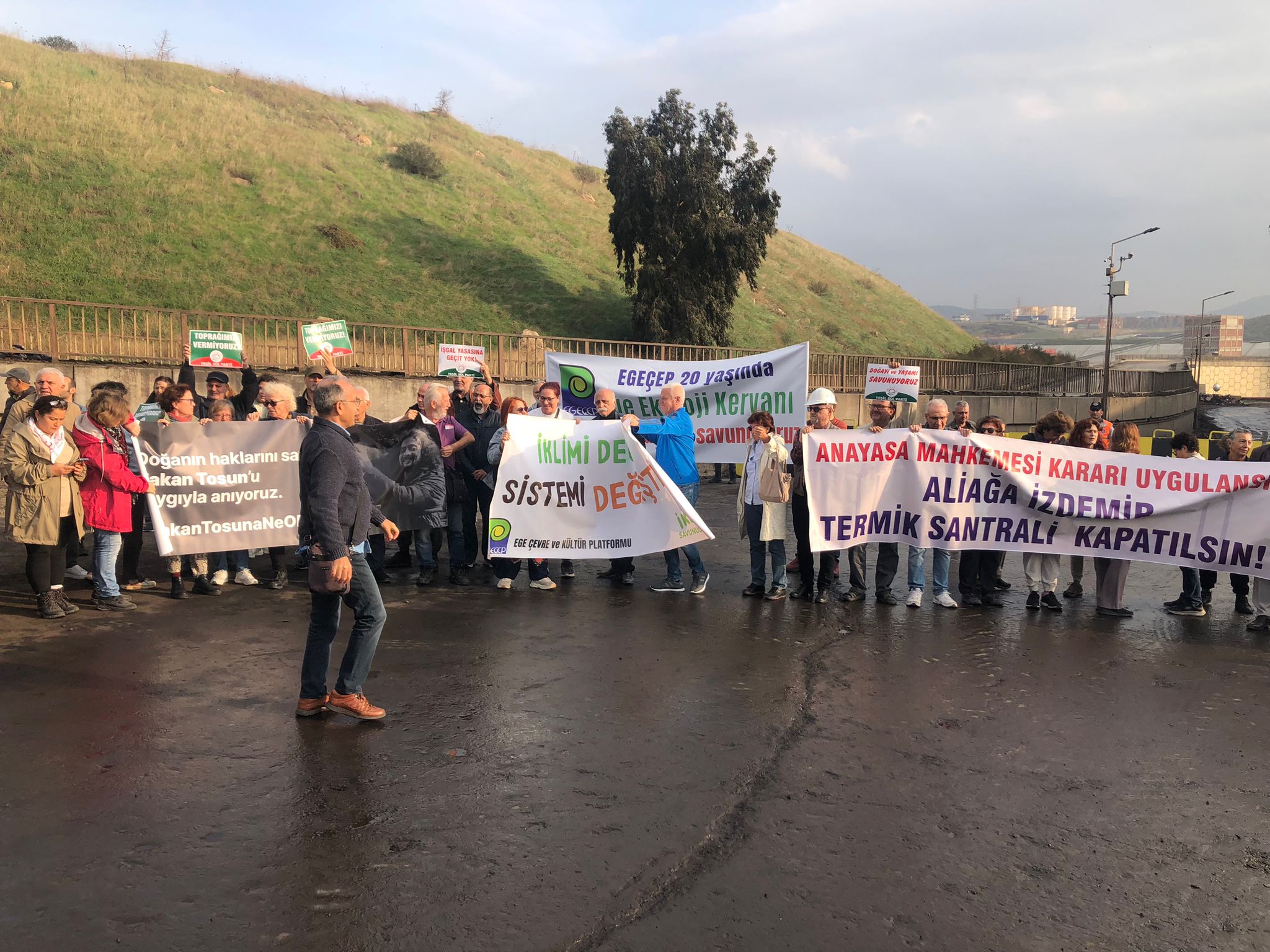 Programın ilk durağı Aliağa’daki İzdemir Termik Santrali oldu. Santral önünde yapılan açıklamada, santralin hukuksuz biçimde faaliyetini sürdürdüğü, ÇED kararları ve mahkeme kararlarına rağmen durdurulmadığı vurgulandı. EGEÇEP ve Foça Tarih ve Doğa Talanına Hayır Platformu, yetkilileri göreve çağırarak, santralin faaliyetlerinin derhal durdurulması talebini yineledi.