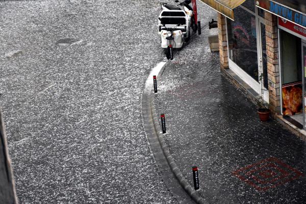 Marmaris'e saat 10.00 sıralarında ise bu kez fındık büyüklüğünde dolu yağdı. 20 dakika aralıklarla 4 defa yağan dolu nedeniyle bazı binalardaki tenteler ve camlar kırıldı.