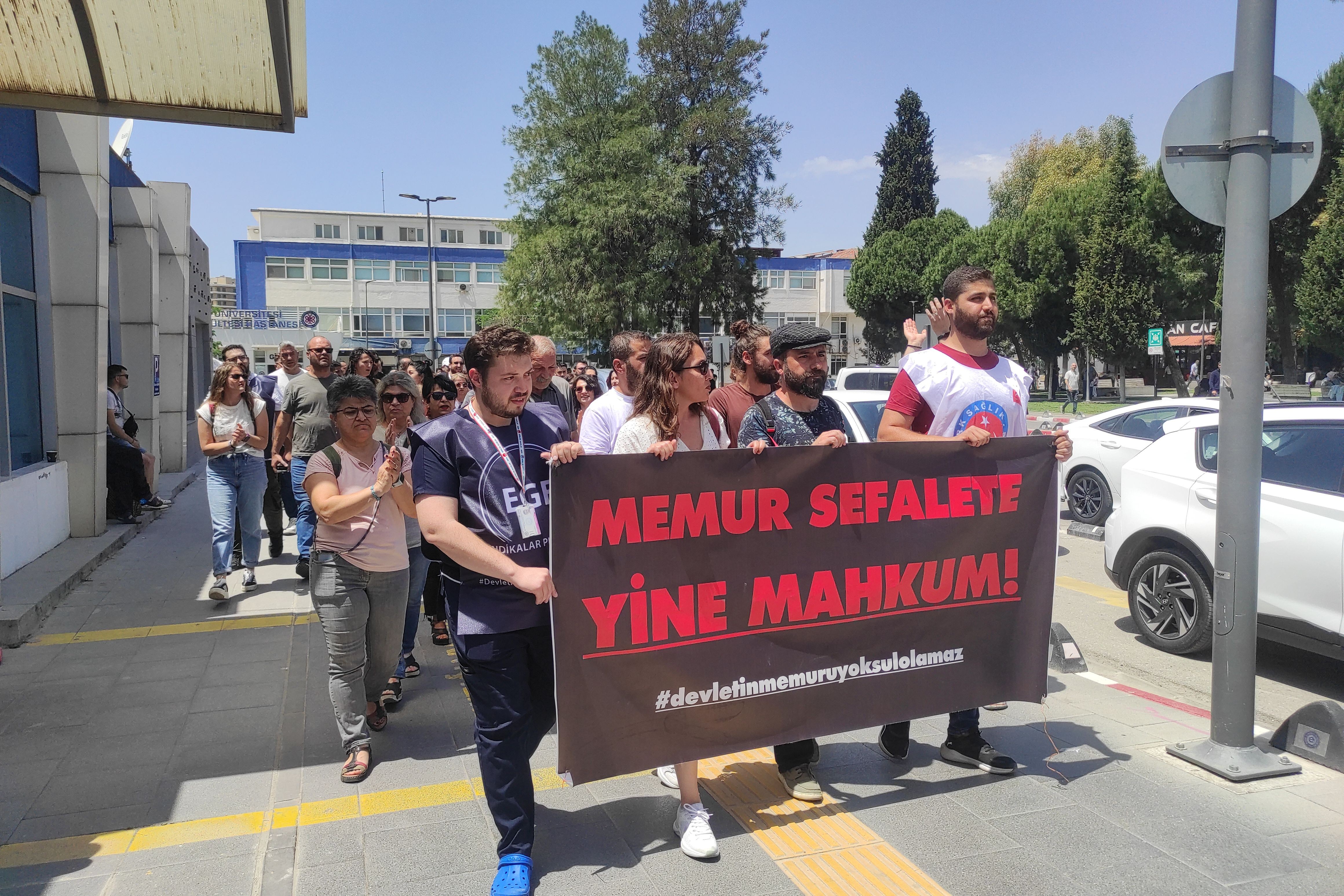 Sağlık emekçileri açıklamanın ardından "Ek ödeme değil tek ödeme", "İnsanca çalışmak insanca yaşamak istiyoruz" sloganları eşliğinde başhekimlik önüne yürüyüş yaptı.