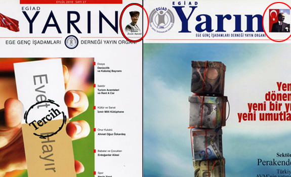 EGİAD'ın yüzünü, felsefesini, faaliyetlerini ortaya koyan çok önemli bir üründür EGİAD Yarın Dergisi. Dergideki, 'Kalpaklı Atatürk' fotoğrafı ve 'Yarınlar Seninle Aydınlık' sözü EGİAD'ın olmazsa olmazlarındandır. 11. dönemin ilk dergisi çıkarken Temel bey bana telefon üzerinde kapağı gösterdi. Kapakta kullanılan para birimleri ile ilgili bir uyarıda bulundum ama 'Kalpaklı Atatürk' fotoğrafının değiştiğini gerçekten görmedim. Dergi çıktıktan sonra bana birçok telefon geldi; 'Atatürk fotoğrafını gördünüz mü?' diye. O ana kadar inanın hiç dikkatimi çekmedi. Çünkü böyle bir şeyin olabileceğine ihtimal dahi vermem.