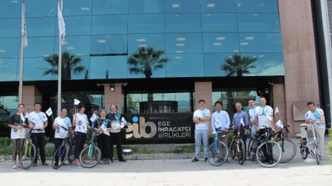 Ege İhracatçı Birlikleri Bisiklet Takımı da İzmir'in Avrupa şampiyonu olması için pedal çeviriyor. Ege İhracatçı Birlikleri Bisiklet Takımı, Avrupa Bisiklet Yarışması'nda İzmir'i zirveye taşımak için 26 Mayıs Cuma günü mesaiye bisikletleriyle gelirken, aynı gün akşam üzeri Alsancak - Üçkuyular arasında 'İzmir'in şampiyonluğu için bir pedal da bizden' sloganıyla pedal çevirdi.