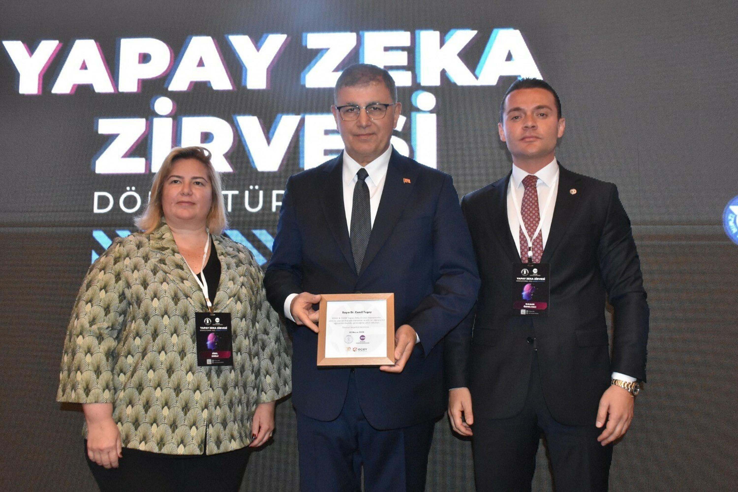 İzmir'i yönetirken yapay zeka teknolojisi uygulamalarını kullanmaya çalıştıklarını belirten İzmir Büyükşehir Belediye Başkanı Cemil Tugay, "İzmir inovasyon ve teknoloji şirketi var. O ve arkadaşlar şu anda yurt dışında akıllı şehir uygulamalarını inceliyor. Özellikle ulaşımda bunu çokça kullandık. Yapay zekayı kullanan herkes çok daha başarılı. İzmir'de herkes bir an önce bu teknolojiyi daha fazla nasıl kullanabileceğini öğrenmeli. Bu konuda muhafazakar olmanın bir anlamı yok. İnanın kurumları 3-5 kat katlayarak başarılı yapıyor. Yapay zeka ile ilgili bir strateji belgesi hazırlıyoruz, kamuoyuyla paylaşacağız. Hiçbirimizin hayal bile edemediği kadar hızlı gelişen bir durum olduğu için başımıza ne gelebileceğine dair de bazı öngörüler içinde olmamız ve kendimizi ona göre ayarlamamız lazım."