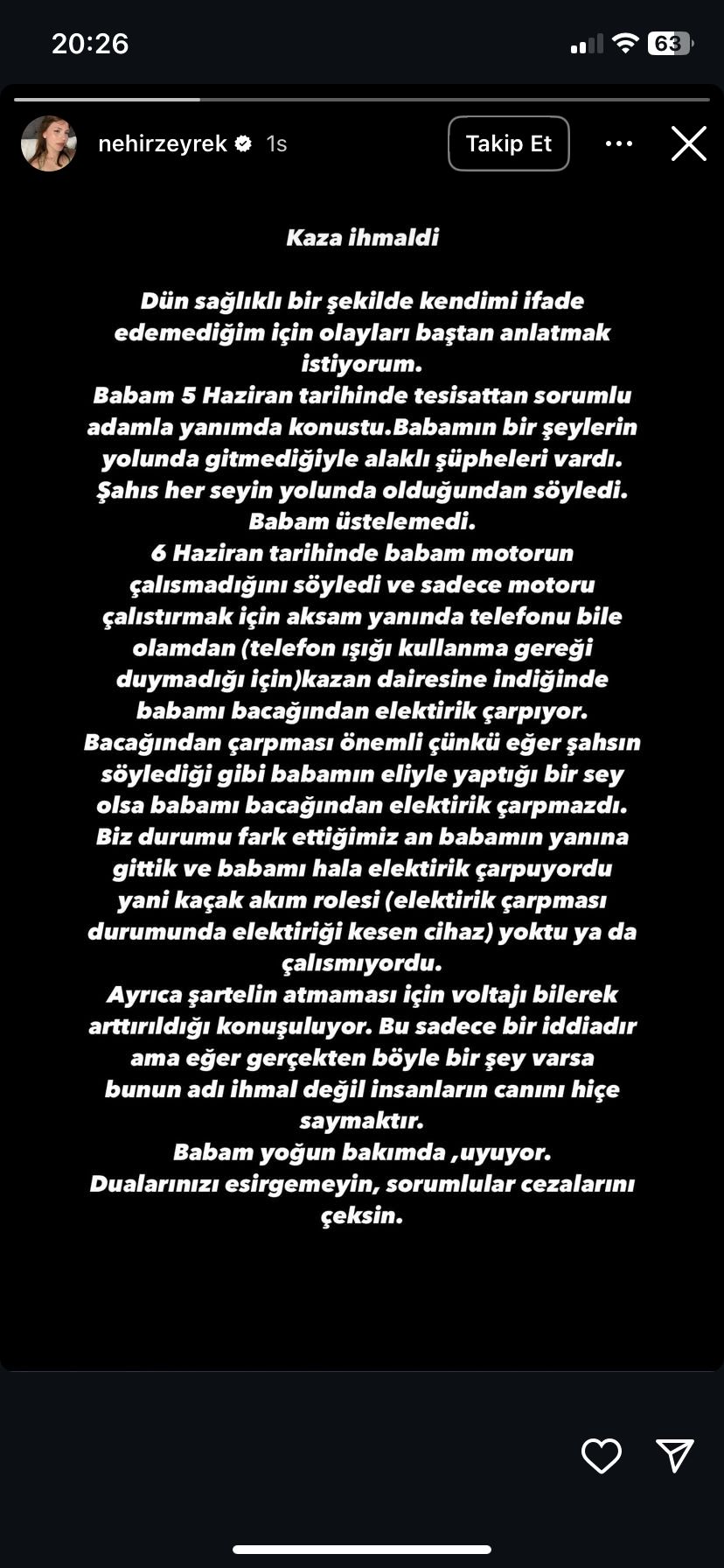 Yapılan başarılı müdahalelerin ardından nabzı tekrar geri dönen ve tedaviye olumlu yanıtlar veren Zeyrek'in hayati tehlikesi sürerken, kızı Nehir Zeyrek'ten "Kaza ihmaldi" açıklaması geldi.