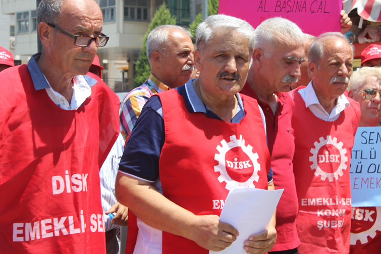 Emeklilerin insanca yaşamak istediğini belirten Özkaynak, 'Emekli maaşı en az asgari ücret düzeyine çıkarılmalı. Biz insanca yaşamak istiyoruz. Bunu yapmıyorsanız bizim ne KYK yurtlarına gidecek paramız ne tatil yapacak paramız var diyor emekli. Bir bardak çaya verecek paramız bile yok. Emeklinin beklentisi insanca yaşayabilmek. Zaten emekliler, yerel seçimlerde bir ders verdiler. Yapılacak ilk genel seçimde bu iktidarı tepe taklak edecekler. Çünkü açlık ve sefalet dayanılmaz bir boyutta. Önümüzde kurban bayramı var. Zaten bir komşu et keserse verirse et veriyor, midesinden bir lokma et geçiyor. Onun dışında ne beyaz ete, ne kırmızı ete erişim imkanı var' sözlerini kullandı.