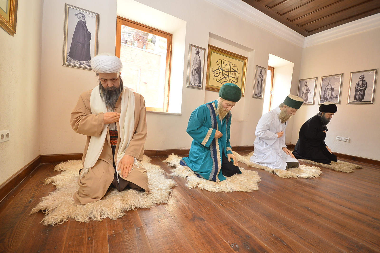 İzmir kültür tarihinin zenginliklerinden biri olan Emir Sultan Türbesi'ndeki Tasavvuf ve Derviş Sergisi'nde ayrıca dervişlerin kıyafetlerini gösteren 33 adet resim, 10 adet orijinal tekke yazısı ile çeşitli tarikatlara mensup derviş ve şeyhlerin kullandığı, 'derviş çeyizi' denilen malzemelerden elif nemed, keşkül-i fukara, mütteka, pazarcı maşası, teber, tığ-bend, surre alayı çantası ve mengüç gibi objelerin orijiinalleri de sergileniyor.