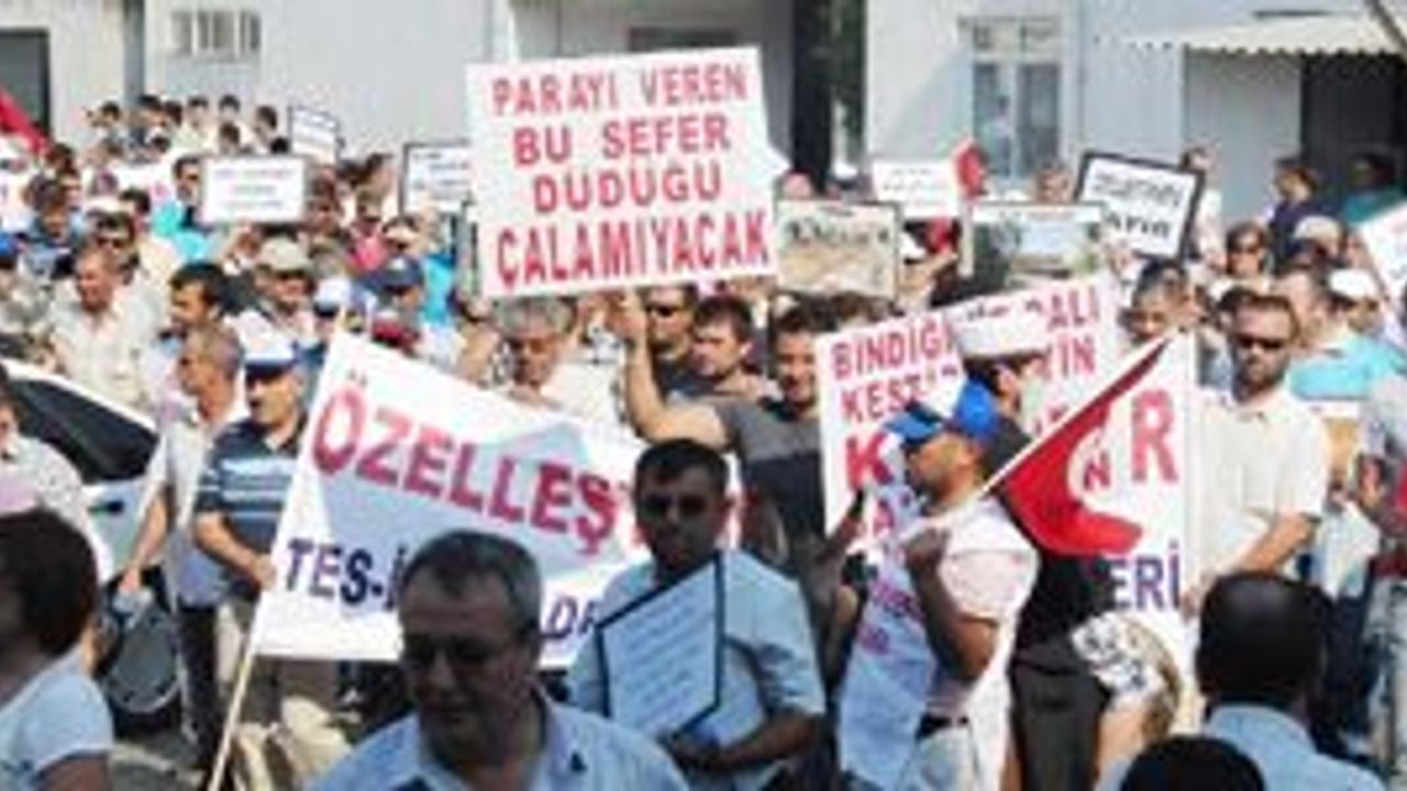 MUĞLA - Enerji ve Tabii Kaynaklar Bakanı Bakanı Taner Yıldız ile Maliye Bakanı Mehmet Şimşek'in Haziran ayında yapılacak ihaleyle Yatağan, Yeniköy - Kemerköy Termik Santrallerini ve kömür ocaklarını özelleştireceklerini açıklamasına tepki gösteren enerji ve maden işçileri Milas'ta bugün saat 17.00'de yürüyüş gerçekleştirdi. İlçeye bağlı Beçin Beldesi'nde toplanan yaklaşık 2 bin 500 kişi, aileleriyle yaklaşık 3 kilometre yürüyerek şehir merkezine geldi. 'KİT'ler vatandır vatan satılmaz', 'Gün gelecek devran dönecek AKP halka hesap verecek', 'Milas uyuma işçine sahip çık', 'Vatanı satanı bizde satarız', 'Direne direne kazanacağız', 'Susma sustukça sıra sana gelecek', 'İş, ekmek yoksa barışta yok', 'Zafer direnen emekçinin olacak', 'Birleşe birleşe kazanacağız', 'Kurtuluş yok tek başına ya hep beraber, ya hiç birimiz', 'Türk İş göreve, genel greve', 'Suskun Türk İş istemiyoruz', 'Hükümet istifa' sloganları atarak yürüyen işçilere, CHP Muğla Milletvekili Tolga Çandar, CHP Milas İlçe Başkanı Suat Özcan, Beçin Belediye Başkanı Mehmet Balcı, Milas Belediye Başkan Yardımcısı Seyfi Sağlıcak, İşçi Partisi Milas yöneticileri, ADD Milas Şube yönetimi, CKD Milas Şubesi yönetimi, mahalle muhtarları, TGB'liler, Pirsultan Abdal Kültür Derneği, Milas Belediyesi İşçileri, emekli enerji işçileri ve vatandaşlar da destek verdi.