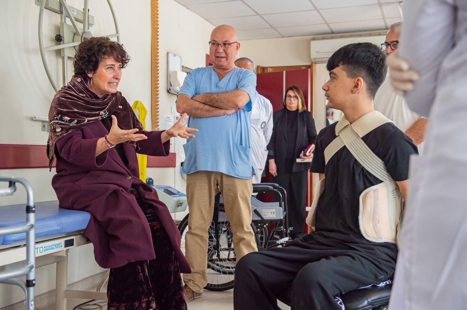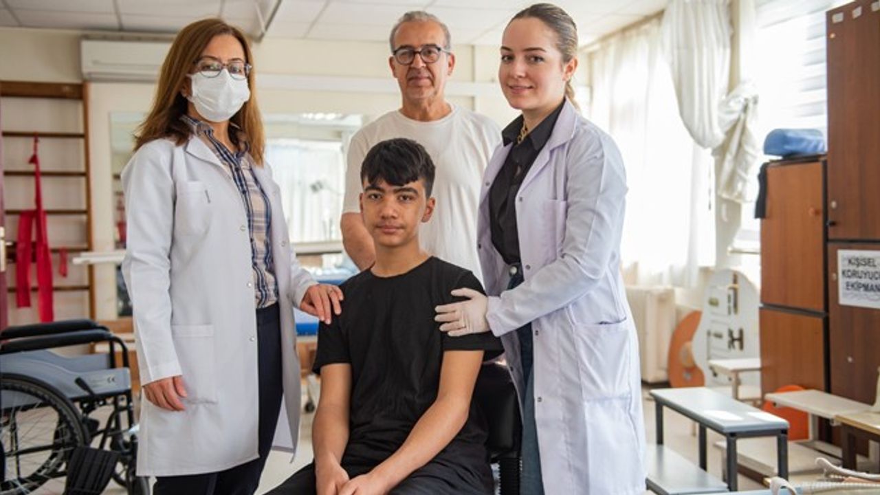 Mustafa Elmas'ın genel durumu hakkında bilgi veren İzmir Büyükşehir Belediyesi Eşrefpaşa Hastanesi Fizik Tedavi Uzmanı Dr. Belkıs Çolak, 'Mustafa ile tanışmamız çok yeni. 3 gün önce tanıştık. Mustafa'nın cerrahi operasyonu Osmaniye Devlet Hastanesi'nde gerçekleşti. Omurga yaralanması vardı. Hastanemize geldiğinde ise yürüyemez durumdaydı. Yavaş yavaş çalışmaya başladık. 3 gün gibi kısa bir sürede ise iyi bir yol kat ettik. Egzersiz ve güçlendirme çalışmalarıyla destek oluyoruz. Uzun bir yolumuz var. Birlikte sabırla Mustafa'yı sağlıkla yürüyebilir hale getireceğiz' şeklinde konuştu.