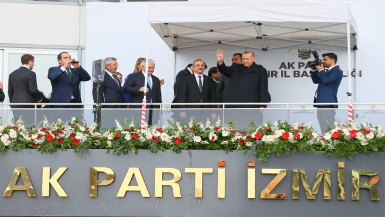 Erdoğan cami açılışının ardından İl Başkanlığı önünde konuşma yaptı. Erdoğan, AK Parti İzmir İl Başkanlığı balkonundan partililere yaptığı konuşmada, 31 Mart yerel seçimiyle ilgili değerlendirmeleri samimiyetle yaptıklarını ve devam ettiklerini belirtti.