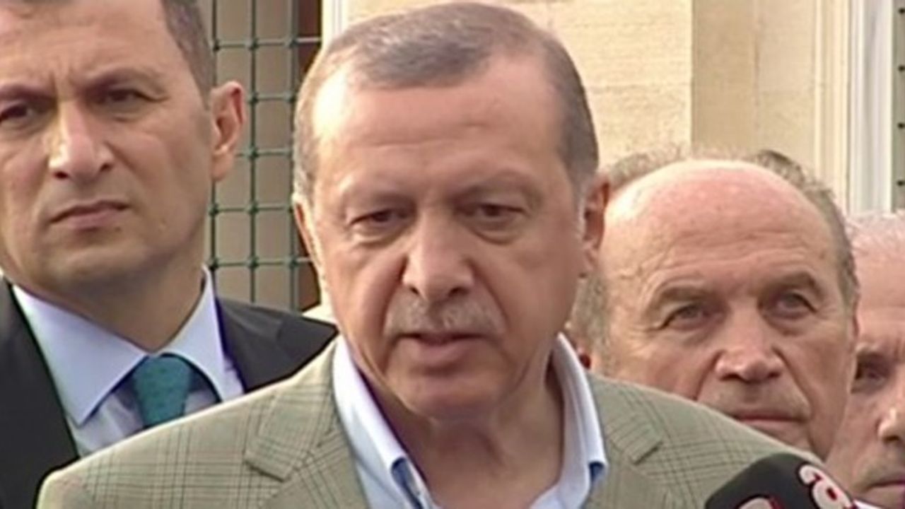 Erdoğan, 'Biliyorsunuz bu bayrama ne yazık ki terörle mücadele içerisinde girmiş bulunuyoruz. O bakımdan tabii çok ciddi sıkıntıları yaşayarak girdik. Ama ben her kutlu doğumun sancılı olacağına inanan bir insanım. Bunun da böyle olacağına inanıyorum. Sonu bunun çok çok hayırlı olacak öyle düşünüyorum, öyle inanıyorum ve mücadelemizi de askerimizle, polisimizle, köy korucularımızla birlikte kararlı bir şekilde sürdürüyoruz. Ramazanda sürdüğü gibi ramazan sonrası bu çok daha tempoyu artırarak devam edecek. Bunu da açıkça söylemem lazım. Böylece milletimin birliği, beraberliği, kardeşlik anlayışı sürdüğü sürece biz bu terörün üstesinden kesinlikle geliriz' diye konuştu.
