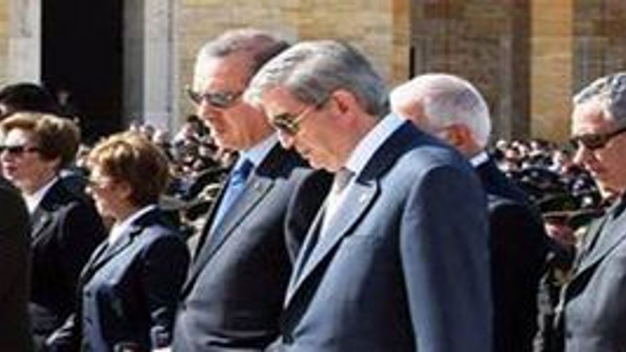Törenler sırasında Başbakan Erdoğan ile CHP Genel Başkan Yardımcısı Öymen, Aslanlı Yol boyunca sohbet etti.