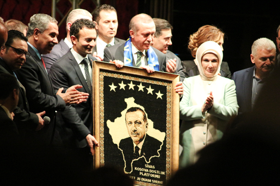 Konuşmanın ardından Erdoğan'a Balkan İşadamları Derneği Başkanı İsmail Karaduman, Kosava Rumeli Derneği Başkanı İbrahim Şengöz, Ege Adaları Derneği Başkanı Murat Unganer, Balkan-Anadolu Derneği Başkanları Ender Öztürk ve Niyazi Gültekin plaket takdim etti.