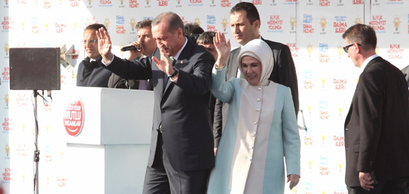Başbakan Erdoğan, İzmir'de miting alanına gelirken balkondan bir kadının kendisine el, kol hareketi yaptığını öne sürerek, 'Şimdi gelirken bir bayan balkonda yanında herhalde kocasıydı. Oradan eliyle öyle çirkin bir hareket yapıyor ki işte CHP bu. Yani ülkenin başbakanı oradan geçiyor sen elinle kolunla o hareketi yapıyorsun. Ya sen bir bayansın, bir kadınsın. Bu ülkenin başbakanı buradan geçerken o kol hareketini nasıl yaparsın? İşte CHP zihniyeti budur. Yani bunu bir erkek yapsa aklım erer de bir bayanın bunu yapmasını ben anlayamıyorum. İşte 30 Mart bunun için çok önemli' dedi.