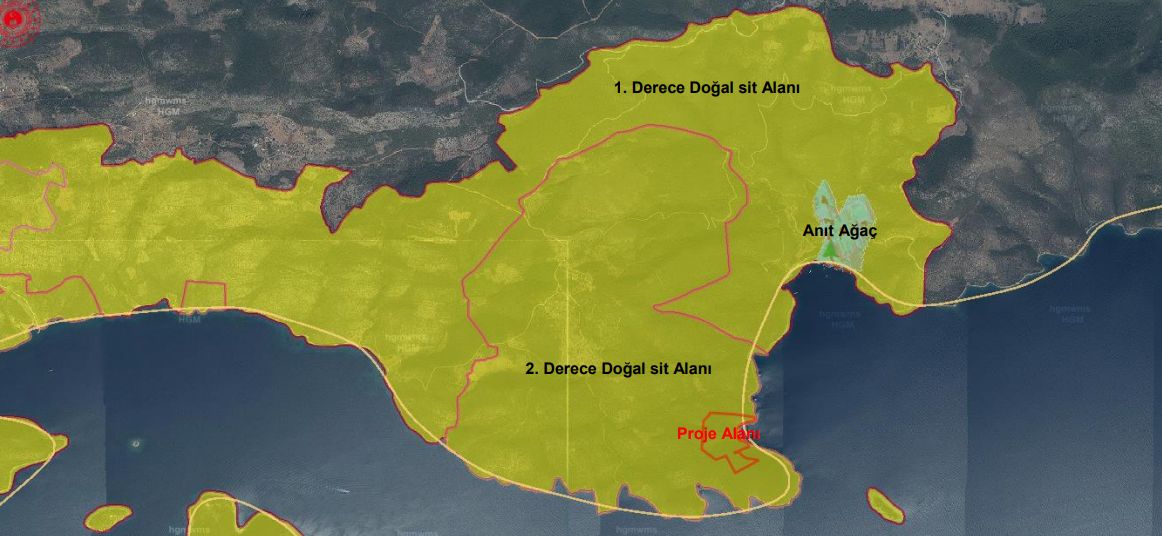 Aynı zamanda 'orman alanı' ve 'önemli doğa alanı'nda kalan proje sahası 2'nci derece doğal SİT, 3'üncü derece arkeolojik SİT özelliğine sahip. Ayrıca proje sahasında Hellenistik Kule Yapısı ve tescilli eserler bulunuyor. Ayrıca otelin yanında Kissebükü arkeolojik deniz alanı bulunuyor.