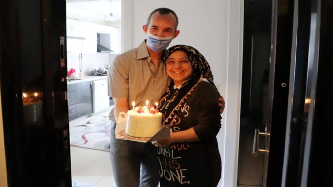 Yeni tip koronavirüs (Kovid-19) nedeniyle sade bir kutlamanın yapıldığı doğum gününde, keyifli dakikalar yaşandı. (AA)