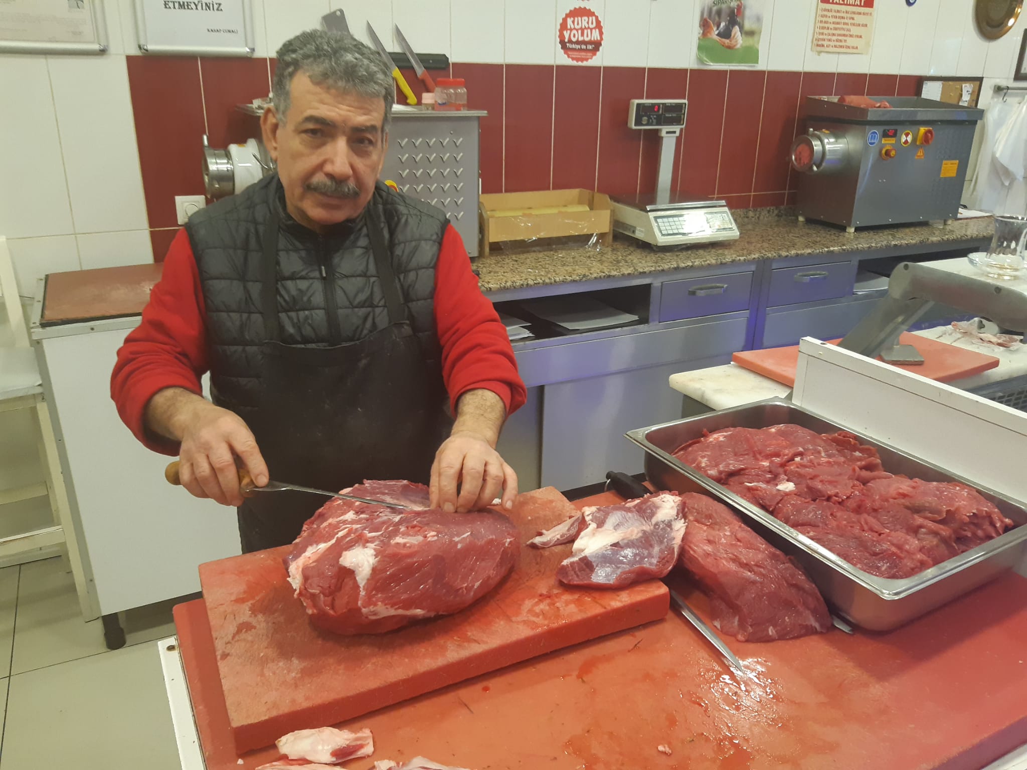 '1 kilo kıyma, geçen hafta 460 liraydı. Şimdi 475 lira. Önümüzdeki Perşembe günü bu rakamın 500 lirayı bulacağı öngörülüyor. 1 kilo bonfile 780 lira, biftek 680 lira, dana kuşbaşı 550 lira. Eskiden haftada 5-6 but alırdım ve hepsini satardım. Şimdi haftada iki but satamıyorum. İş hacmimizdeki daralma yüzde 70'i buldu. Vatandaş, rakamları görünce, 100 gram kıyma istemeye başladı. Kepenk kapatma noktasına geldik.'