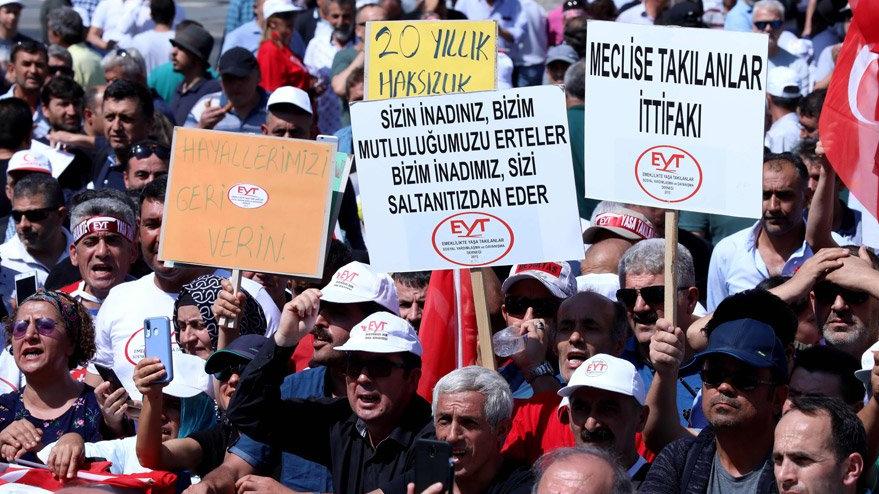 '2018 seçimlerinden önce AKP hariç bütün siyasi partiler, ilk icraatımız EYT sorununu çözmek, dedi. Bütün partiler önerge verdi. Buna MHP de dahildi. Seçimlerden sonra komisyonda görüşülürken birinci oylamada kabul edildi, önerge... O zamanın MHP Grup Başkanvekili, Erhan Usta idi. Önerge kabul edildikten bir saat sonra, Erhan Usta, görevden alındı. Sebep, 'Sen elini niye kaldırdın?' Erhan Usta, ilerleyen süreçte partiden ihraç edildi. Bugün İYİ Parti saflarında siyaset yapıyor. Bütün muhalefet partileri evet demişti, biz sevinmiştik. İkinci oylamada MHP, bu sefer çekimser kaldı. O gün söz veren partiler, milletvekilleri, bugün meclis çatısı altında ellerini vicdanına koyarak 'Biz halkımıza söz verdik, halkımızı kandırmayalım, gelin bu işi çözelim' dedikleri anda bu iş çözülür. Yeter ki bugün hükümetin ortağı olan MHP milletvekilleri ellerini vicdanlarına koyarak 'biz o gün söz verdik, sözümüzü tutalım' desin.'