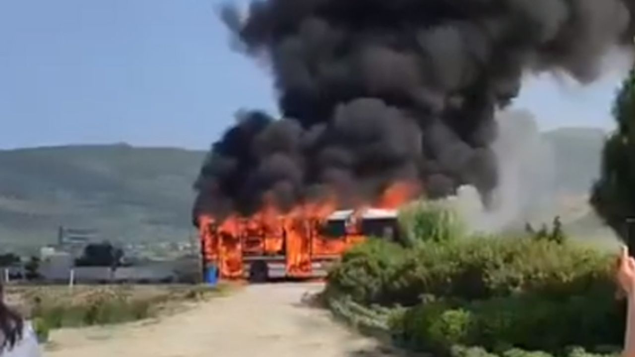 İtfaiye ekiplerinin müdahalesiyle söndürülen yangında, belediye otobüsü kullanılamaz hale geldi.