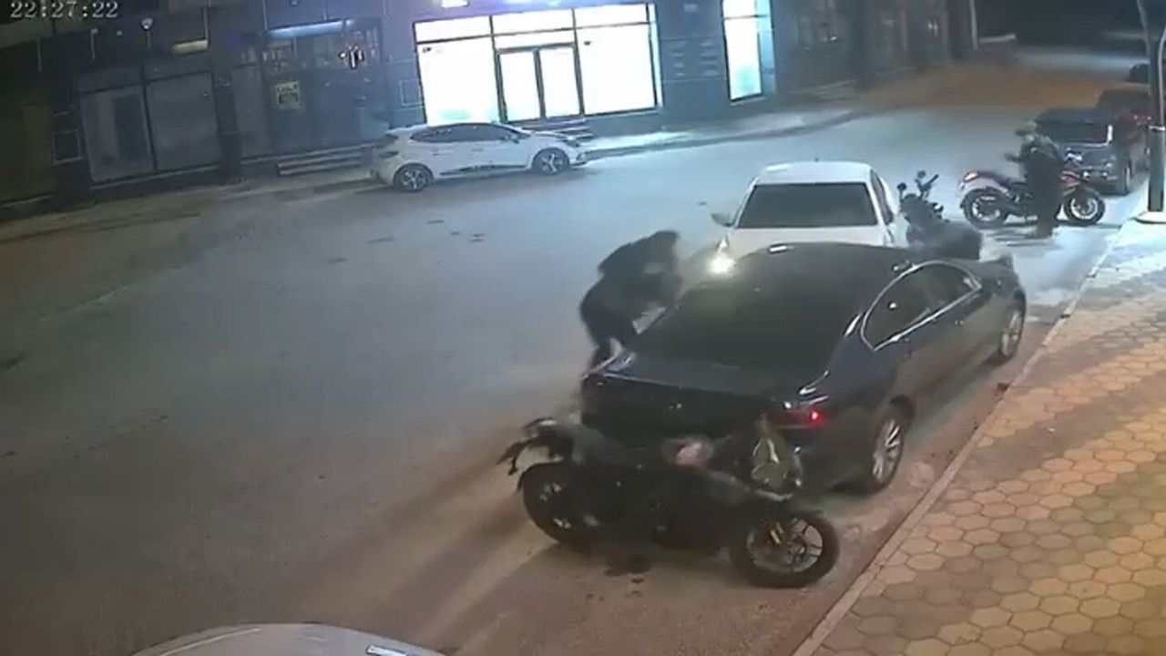 Kaza, dün saat 22.30 sıralarında ilçe merkezinde meydana geldi. P.K.'nin (21) kullandığı 06 ABY 508 plakalı otomobil, yol kenarında arkadaşıyla sohbet eden motosikletliye ardından da park halindeki otomobile çarptı. Yere düşen motosiklet sürücüsü yaralandı. Olay sırasında telefonla konuşan yaya da kazadan saniye farkla kurtuldu. Çevredekilerin ihbarıyla kaza yerine sağlık ve polis ekipleri sevk edildi. Olay yerindeki ilk müdahalenin ardından, yaralı motosiklet sürücüsü ambulansla Emirdağ Devlet Hastanesi'ne götürüldü. Kazayla ilgili inceleme başlatıldı. Kaza anı çevredeki iş yerinin güvenlik kamerasına yansıdı. Görüntüde otomobilin önce motosiklete ardından park halindeki araca çarptığı görüldü. (DHA)