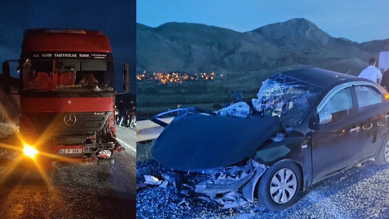 M.K. (54) idaresindeki 42 P 9961 plakalı tır, Çayıryazı köyü yakınlarında N.B'nin (37) kullandığı 65 ACS 412 plakalı otomobille çarpıştı.