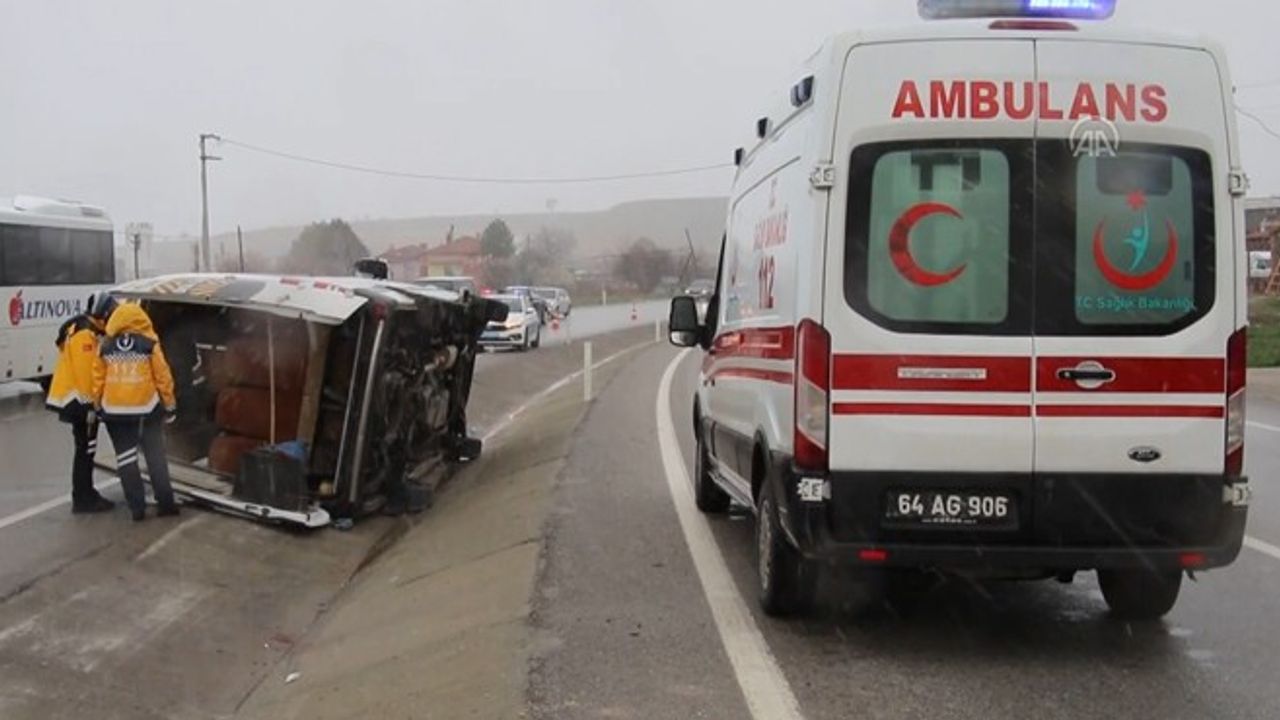 Sivaslı istikametinden kent merkezine doğru seyreden D.A'nın kullandığı 64 S 0226 plakalı minibüs, Cezaevi Kavşağı'nda refüjdeki su kanalına devrildi.