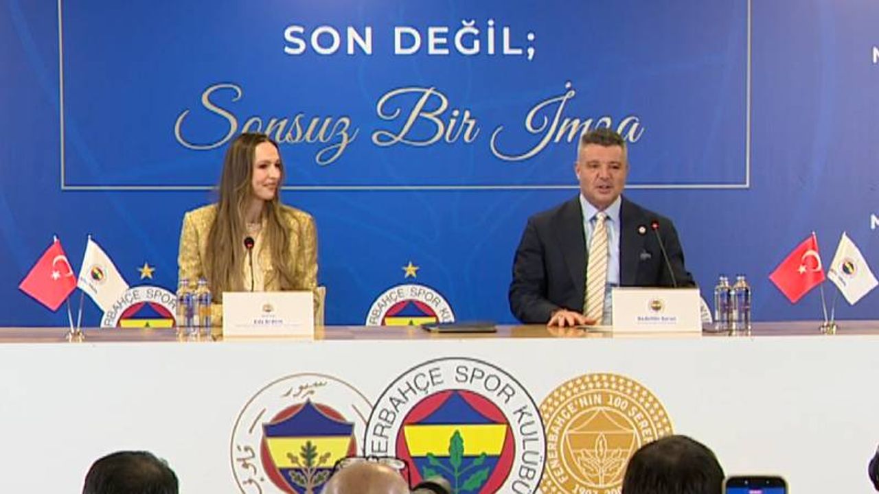 Chobani Stadı'ndaki imza törenine, Eda Erdem'in yanı sıra kulüp başkanı Sadettin Saran ve genel sekreter Orhan Demirel katıldı.
