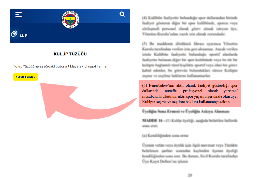 Kulüp tüzüğünde “Üyenin Hak Ve Yükümlülükleri, Üyeliğin Sona Ermesi Ve Askıya Alınması” bölümünde yer alan 6’ncı maddede şu ifadeler yer alıyor: