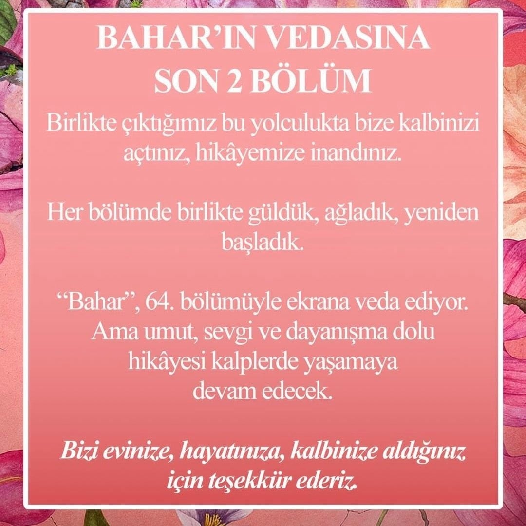 Oyuncu kadrosunda Buğra Gülsoy, Ecem Özkaya, Demirhan Demircioğlu, Nilsude Albayrak, Füsun Demirel ve Hatice Aslan gibi isimlerin yer aldığı Bahar, konusu ve oyunculuk performanslarıyla sezonun dikkat çeken projeleri arasında yer aldı. Yapımın, izlenme oranlarında olağanüstü bir yükseliş yaşanmaması halinde yılbaşı öncesinde ekran yolculuğunu tamamlaması planlanıyordu.