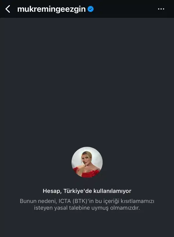Aile ve Sosyal Hizmetler Bakanlığı'nın şikayeti üzerine sosyal medya fenomeni Mükremin Gezgin’in Instagram hesabına Türkiye’den erişim engeli getirildi.