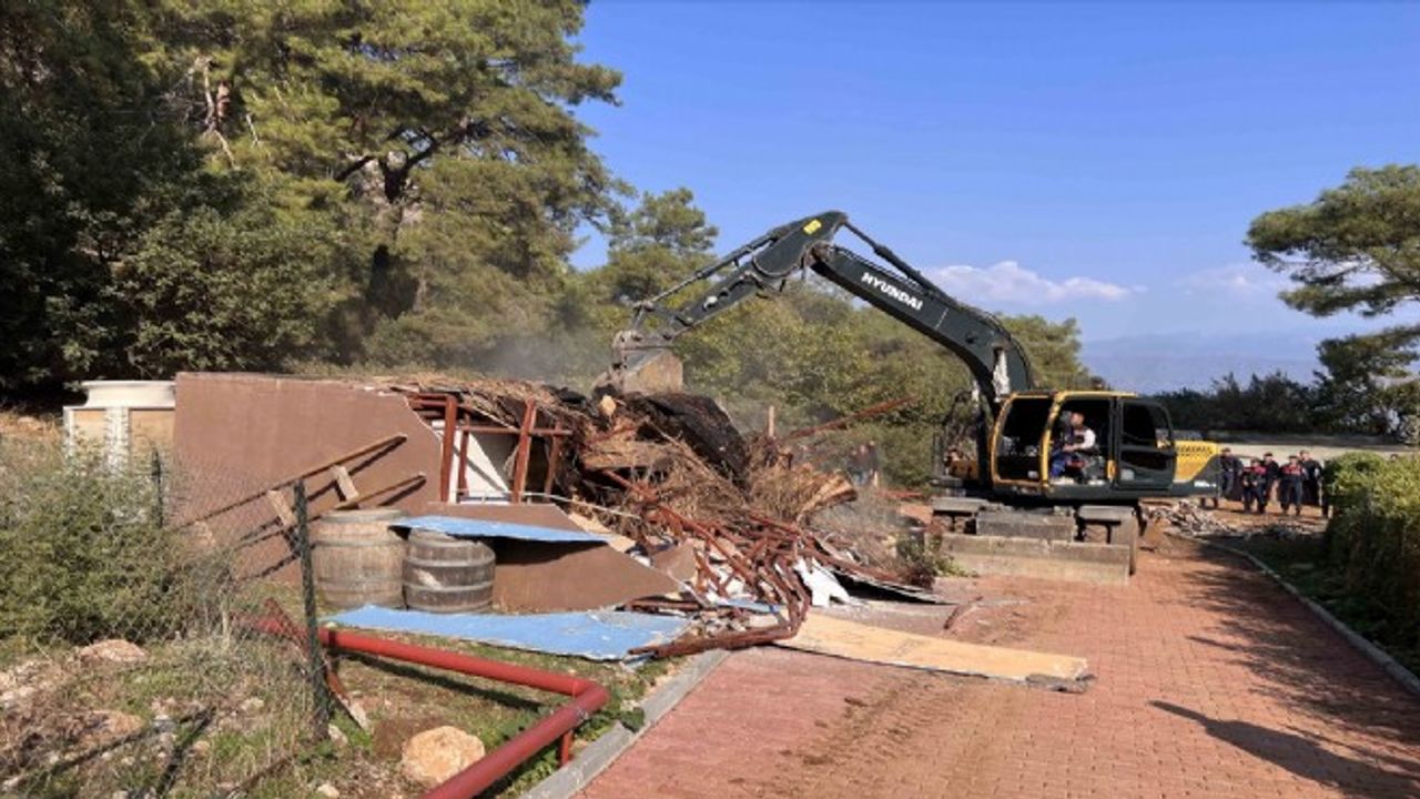Belediye ekipleri Kayaköy Mahallesi Turunç Pınarı Koyu'nda, ormanlık alan içerisine deniz manzaralı olarak izinsiz inşa edilen yapıların yıkımını gerçekleştirdi.