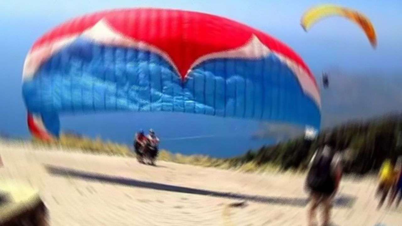 Ölüdeniz Mahallesi'ndeki Babadağ'ın bin 900 metre pistinden yamaç paraşütü pilotu B.P, hazırlıkların ardından serbest düşüş sporcuları H.P. ve C.B.Ş. ile kalkış yaptı.