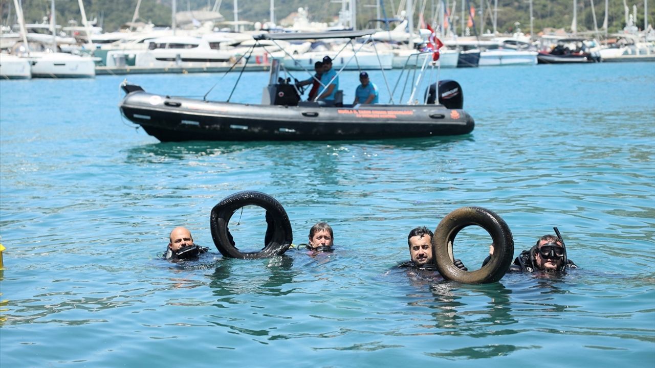 Muğla Tarım ve Orman Müdürlüğünce Göcek açıklarında 14 noktada "Plastik kirliliği ile mücadele" mottosuyla deniz dibi temizliği gerçekleştirildi.