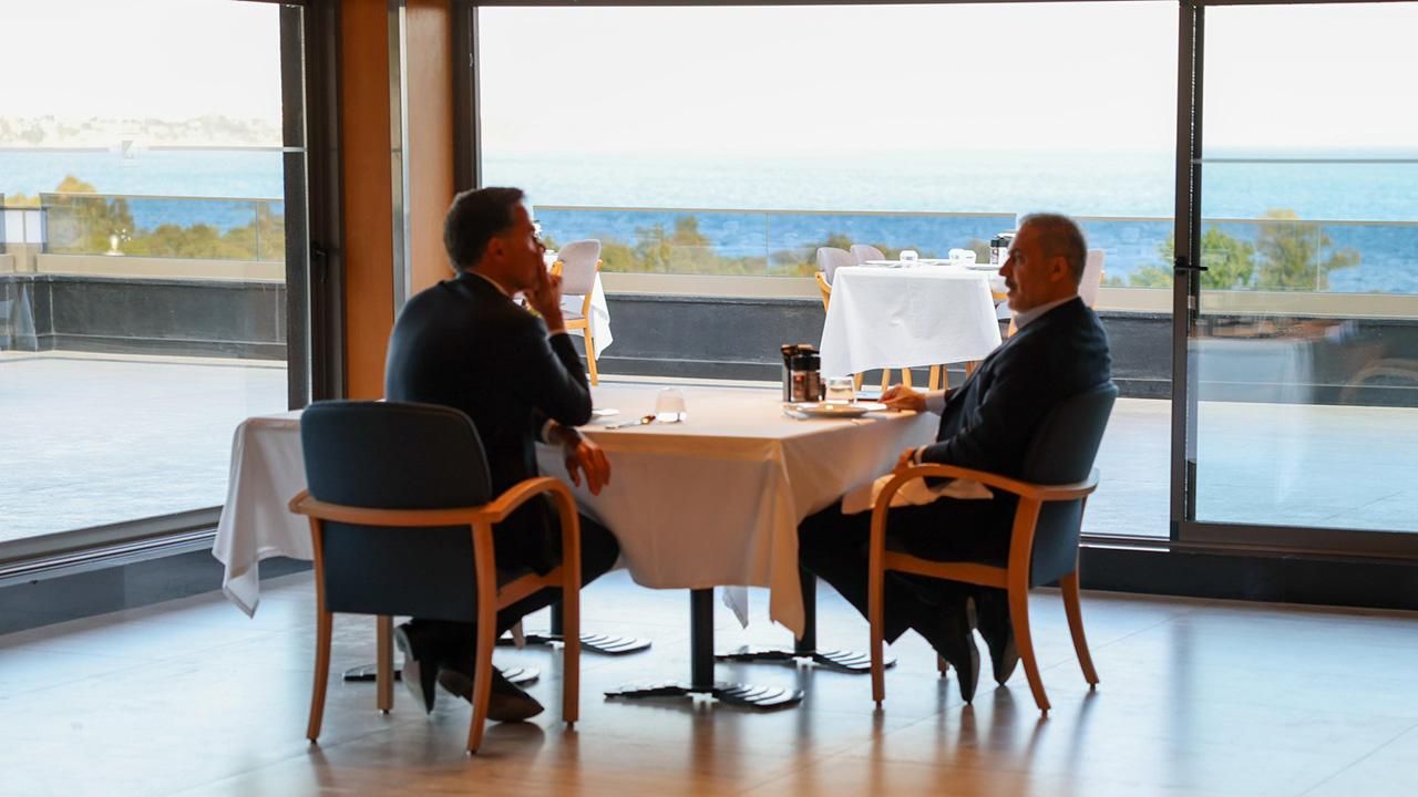 Fidan ile Rutte NATO Dışişleri Gayriresmi Toplantısı öncesinde Rutte ile Antalya'da çalışma yemeğinde bir araya geldi.