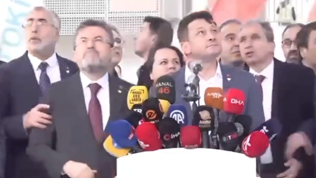 AA'nın kamerasına takılan görüntülerde Hamza Dağ ve Tarım ve Orman Bakanı İbrahim Yumaklı soğukkanlılıklarını korurken Sanayi ve Teknoloji Bakanı Mehmet Fatih Kacır'ın kürsüden koşarak kaçtığı görüldü.