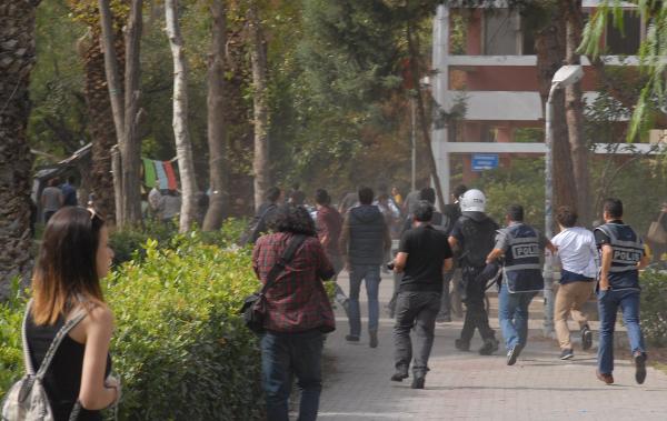 Grup üyeleri, basın açıklamasının ardından dağıldıkları sırada kendilerine tepki gösteren ve slogan atan kişilerle tartışmaya başladı. Bozkurt işareti yapan gruptakiler ile karşıt görüşlüler arasında kampüs alanında taşların, demir sopaların, bıçakların kullanıldığı kavga çıktı. Basın açıklaması sırasında, kampüs alanında önlem alan çevik kuvvet polisi olaya müdahale etti. Biber gazı da kullanan polisin müdahalesiyle, gruplar ayrılıp, uzaklaştırıldı. (dha)