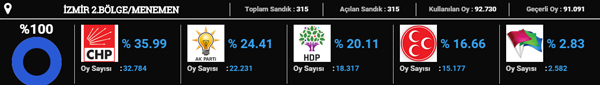 EGEDESONSÖZ - İzmir'de 2015 genel seçimlerinde CHP ipi göğüslerken, sandığa HDP damga vurdu, MHP 'kazançlı' cephede yer alırken, AK Parti kan kaybı yaşadı.