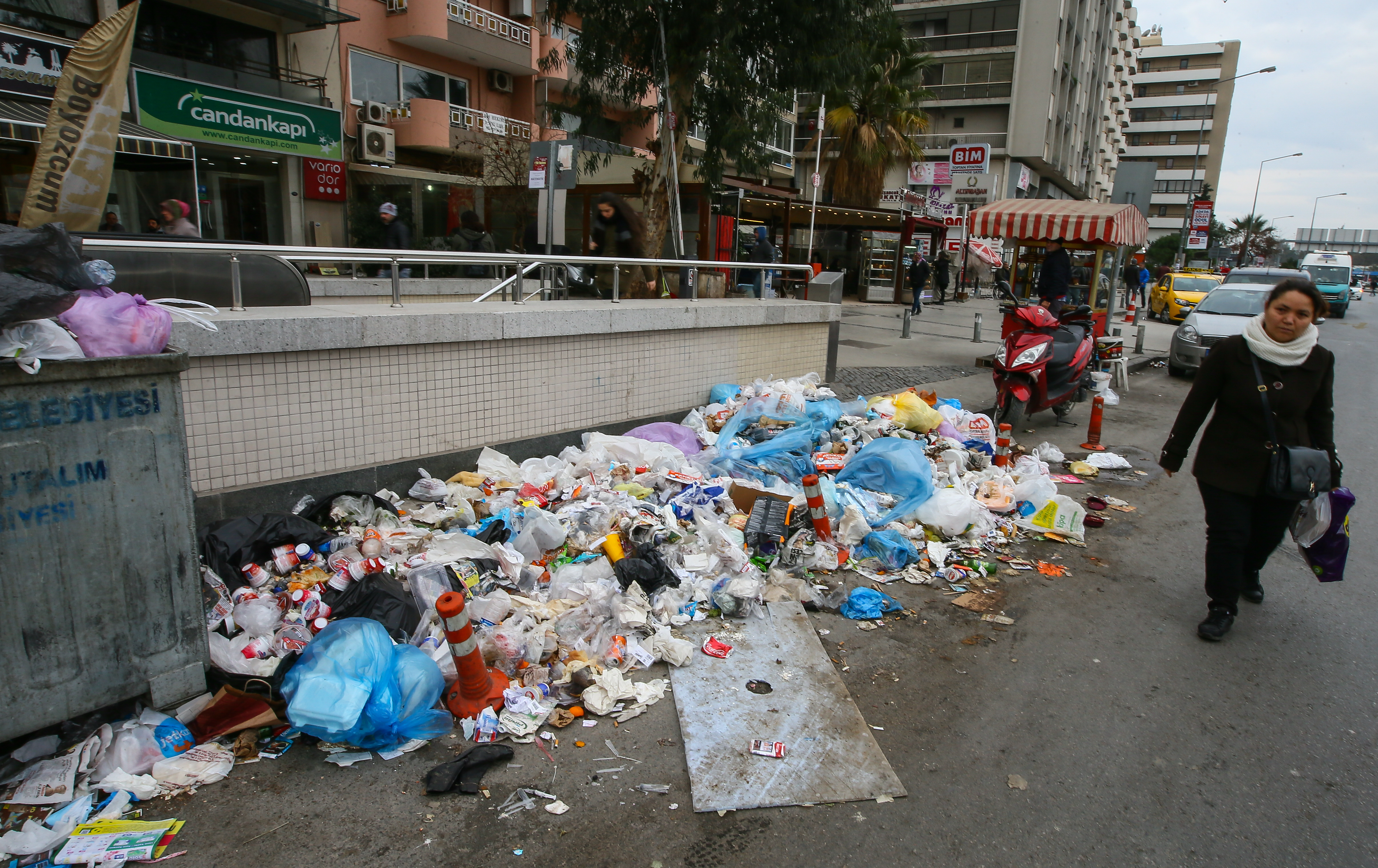 İlçe genelinde çöplerin toplanmadığı Karabağlar'da, konteynırların çevresinin çöpler ile doldu-taştı…