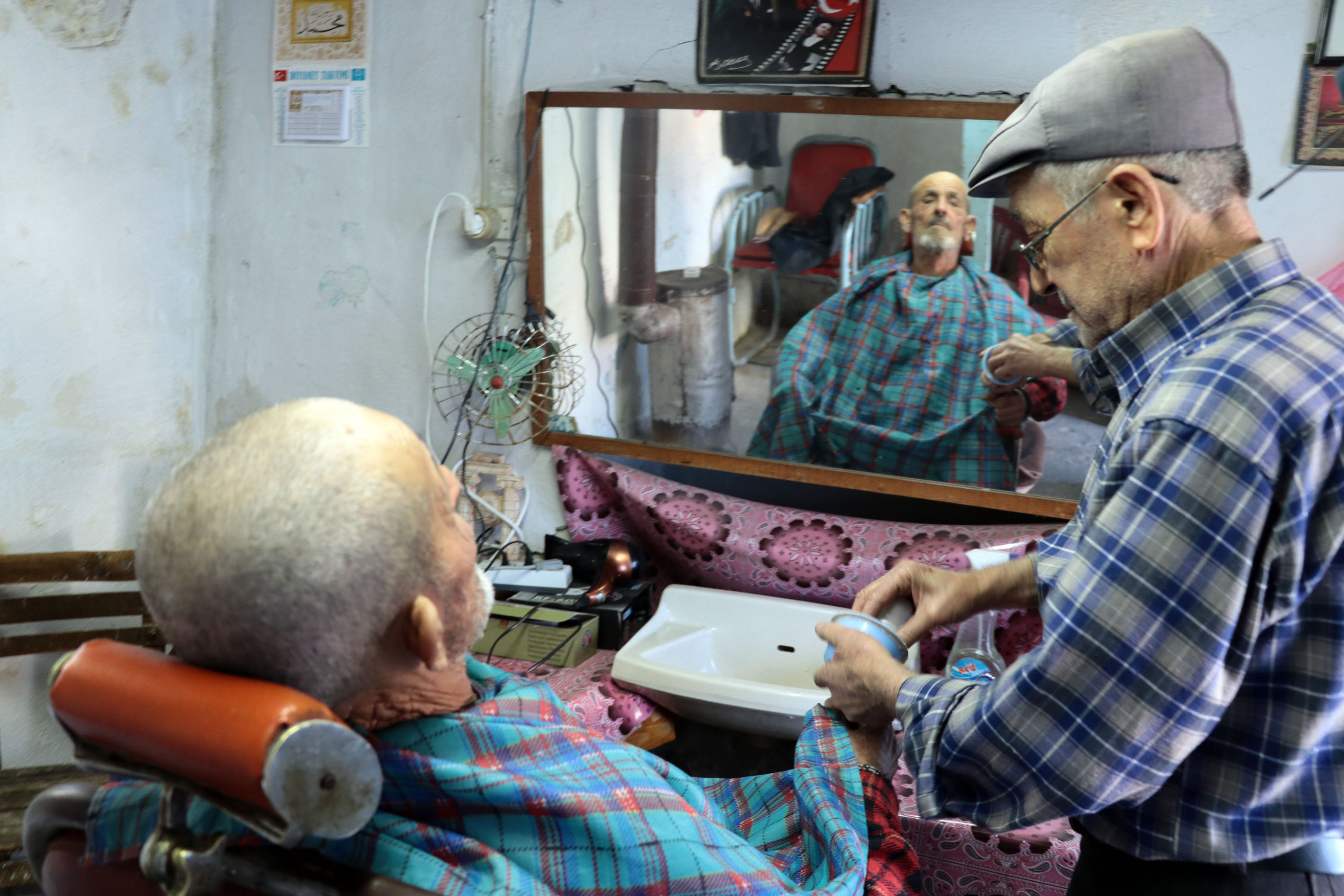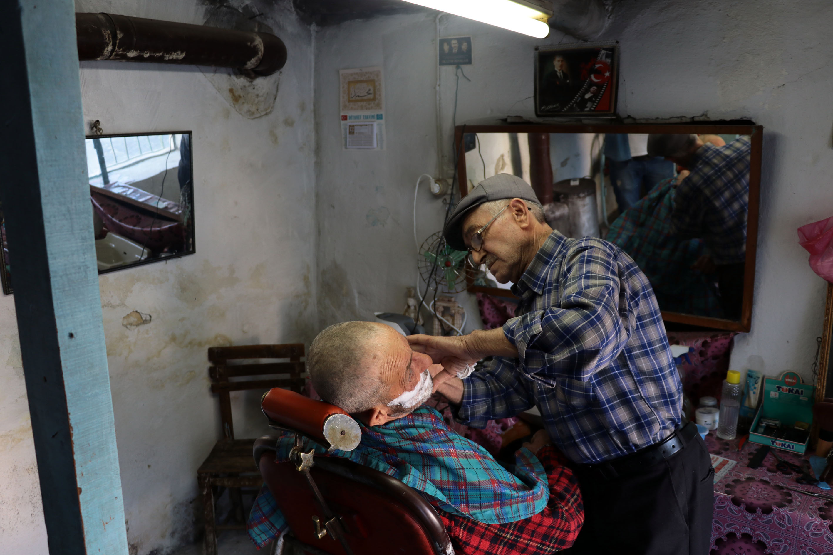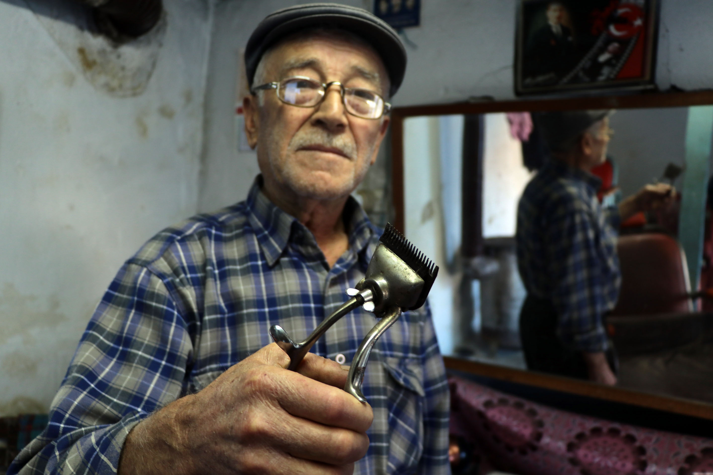 Aydın'ın Koçarlı ilçesinde, 10 metrekarelik dükkanında 60 yıldır berberlik yapan Ahmet Aydoğdu, ilerleyen yaşına rağmen çok sevdiği mesleğini sürdürüyor.